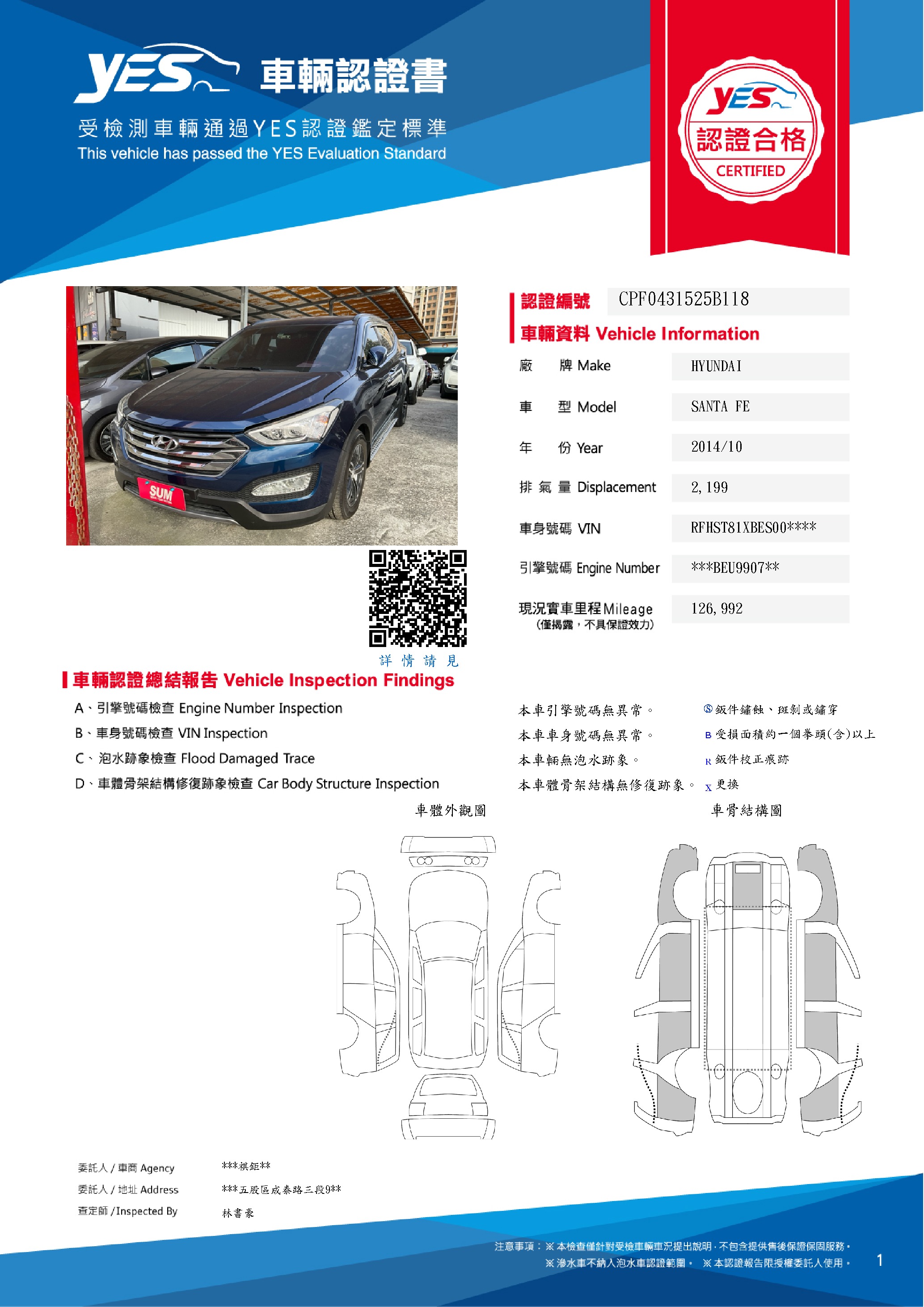 YES車輛認證書