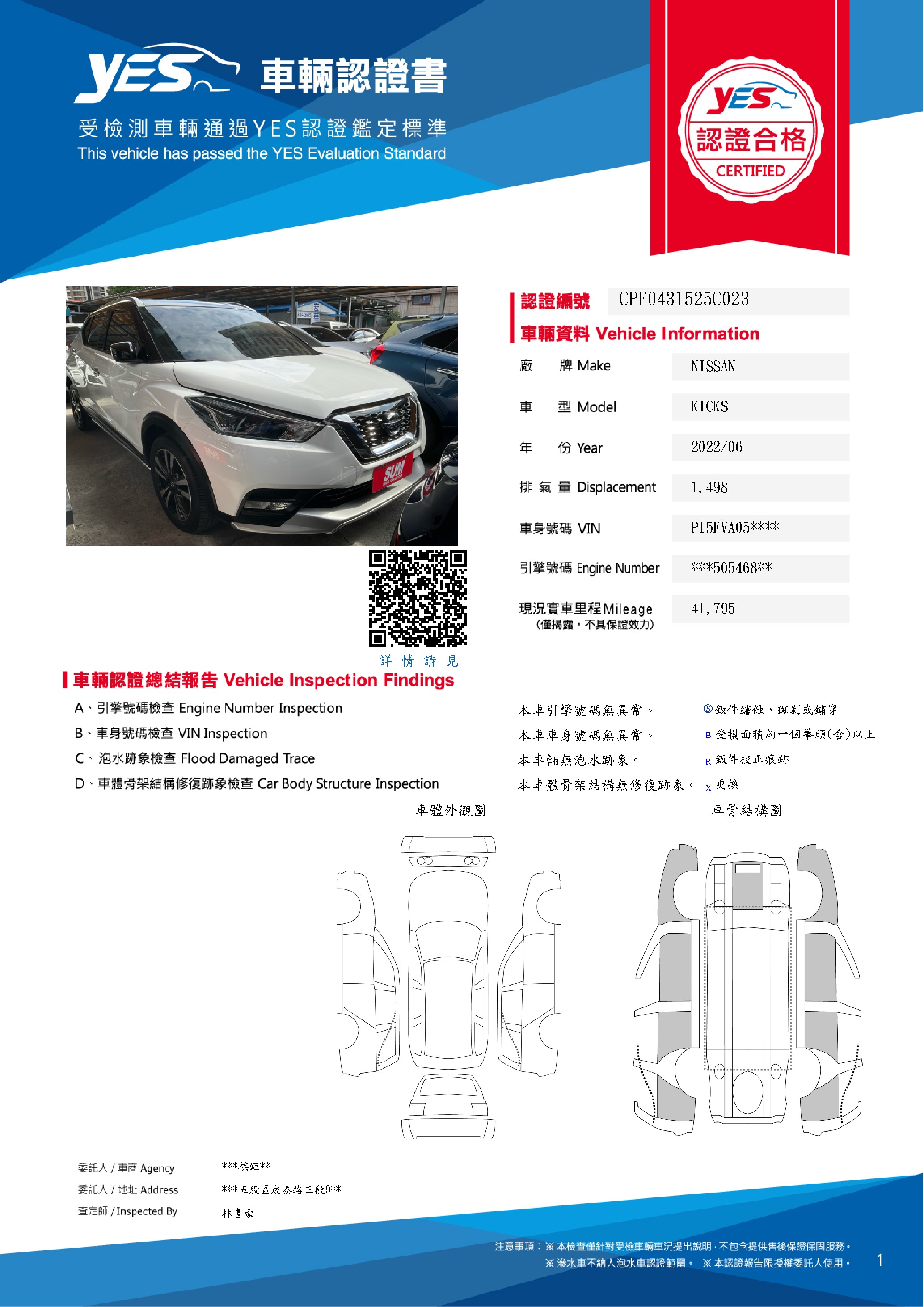 YES車輛認證書