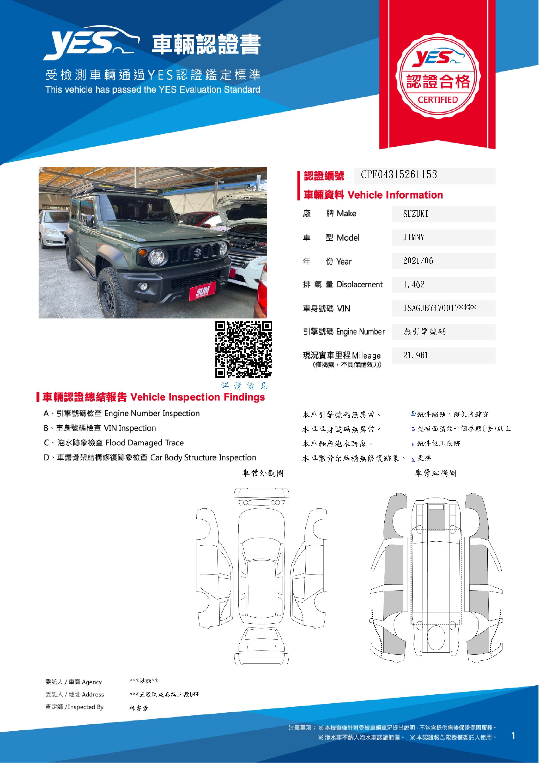 若有需要我們還會提供第三認證、讓您買的安心、開的愉快^^