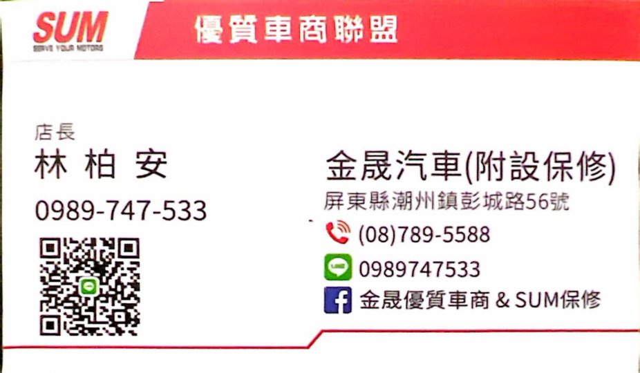 車輛符合SUM保固條件,提供引擎、變速箱、方向機、起動馬達、發電機的保固,索賠無上限