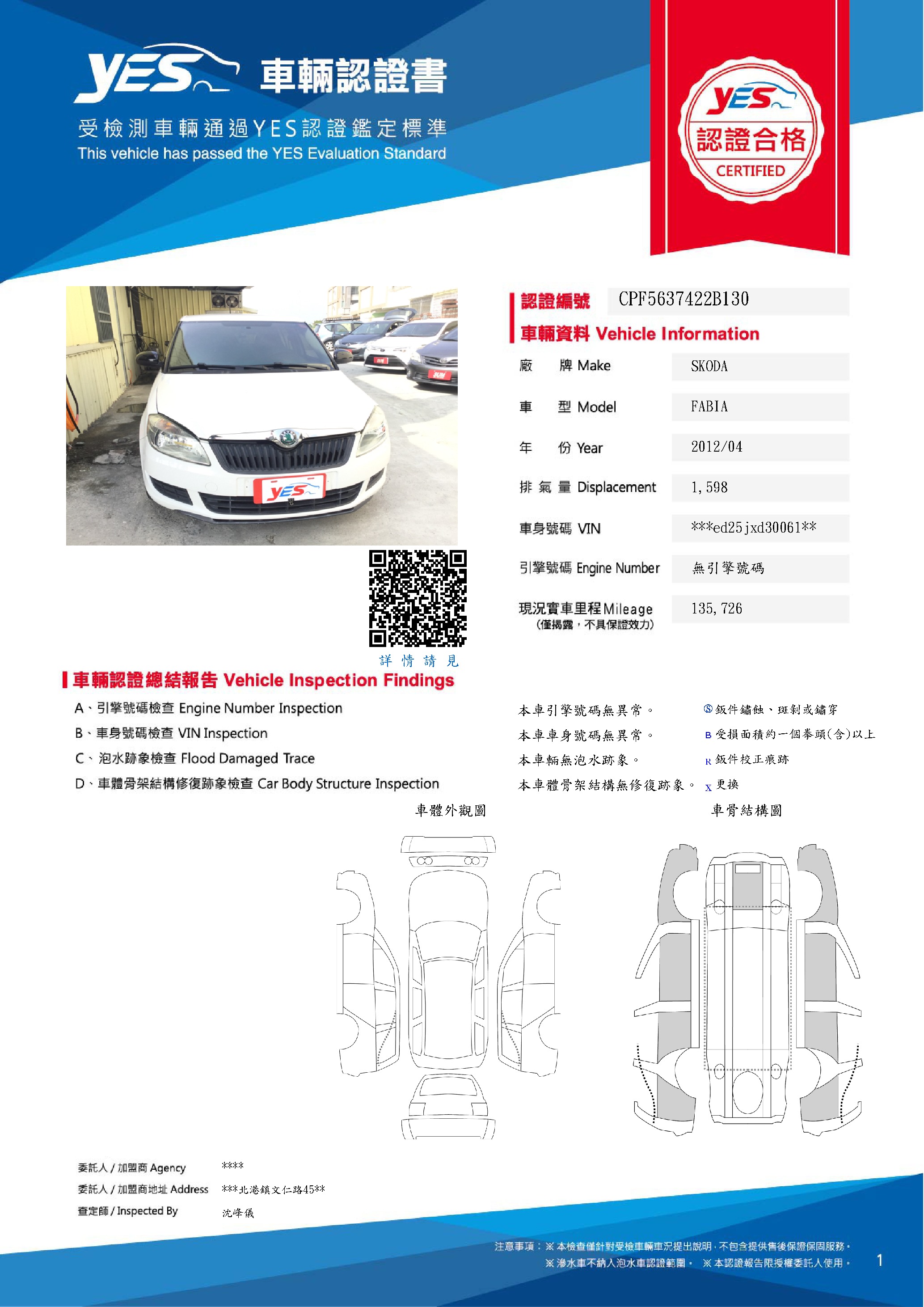 本車已由YES專業查定師完成 153 項檢測