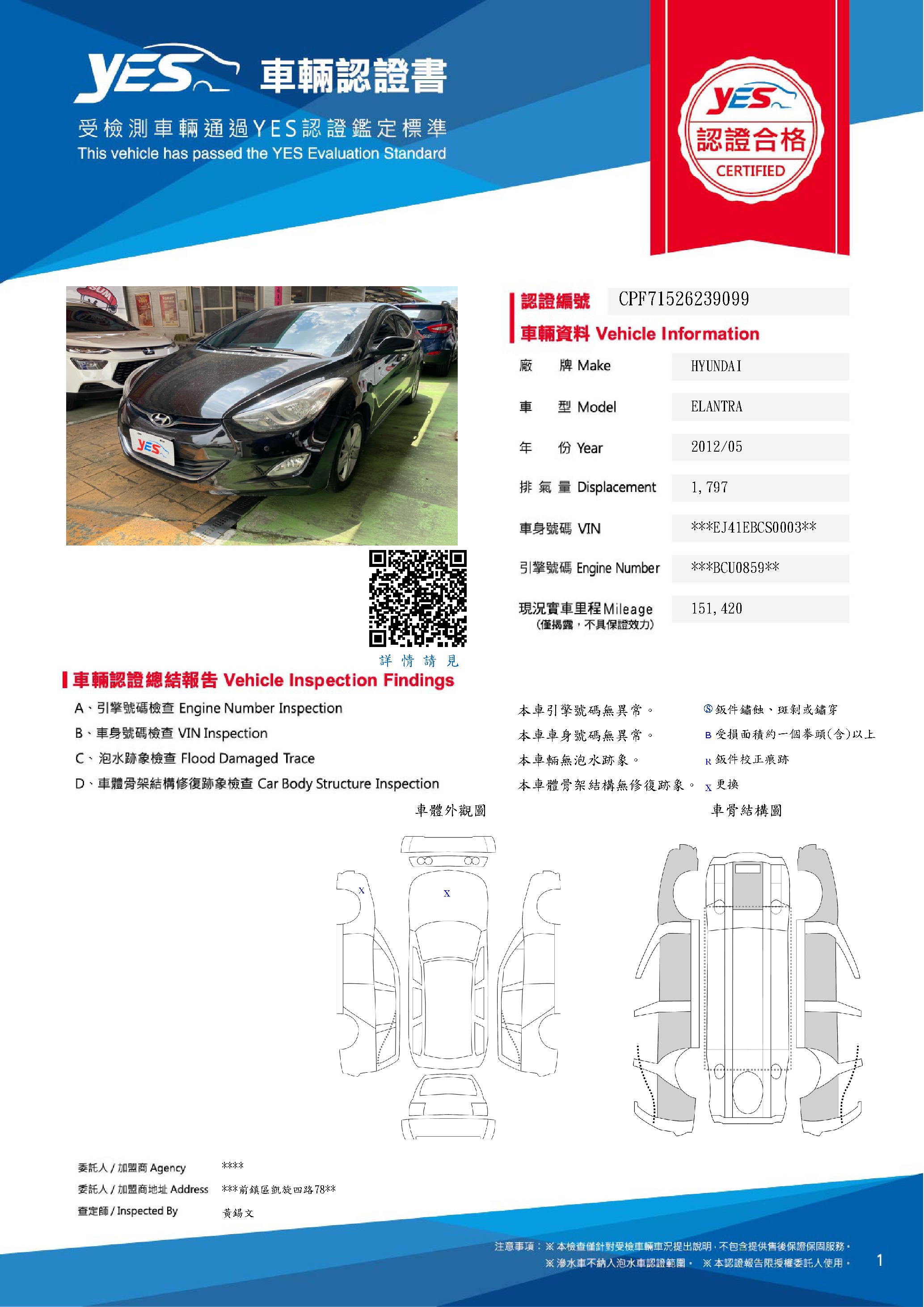 本車已由YES專業查定師完成 153 項檢測