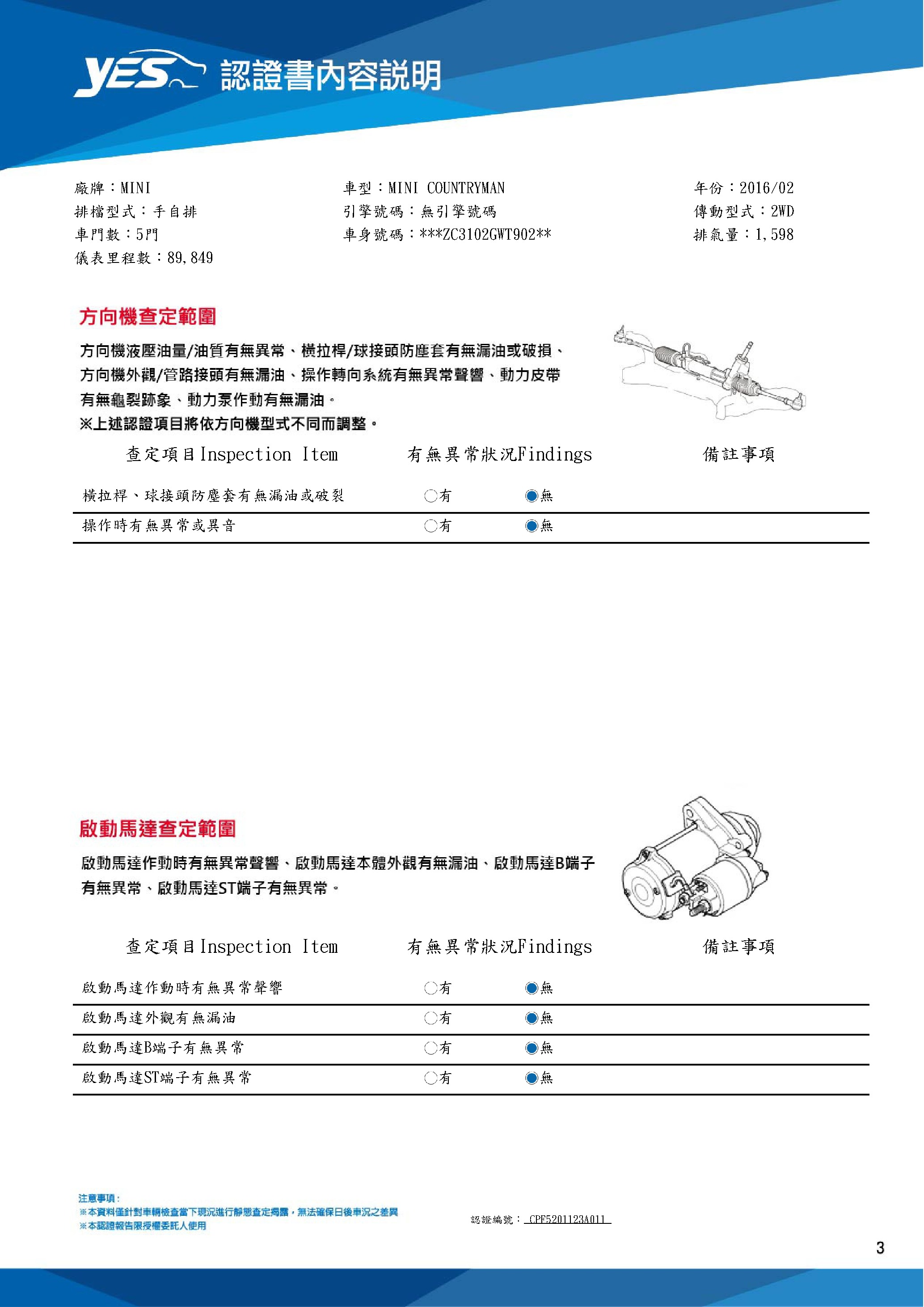 本車已由YES專業查定師完成 153 項檢測