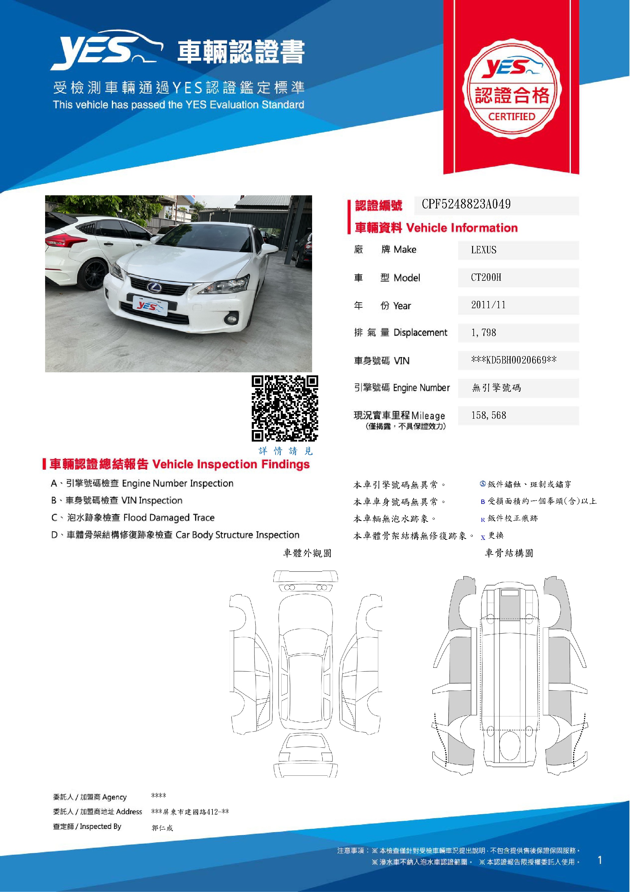 本車已由YES專業查定師完成 153 項檢測