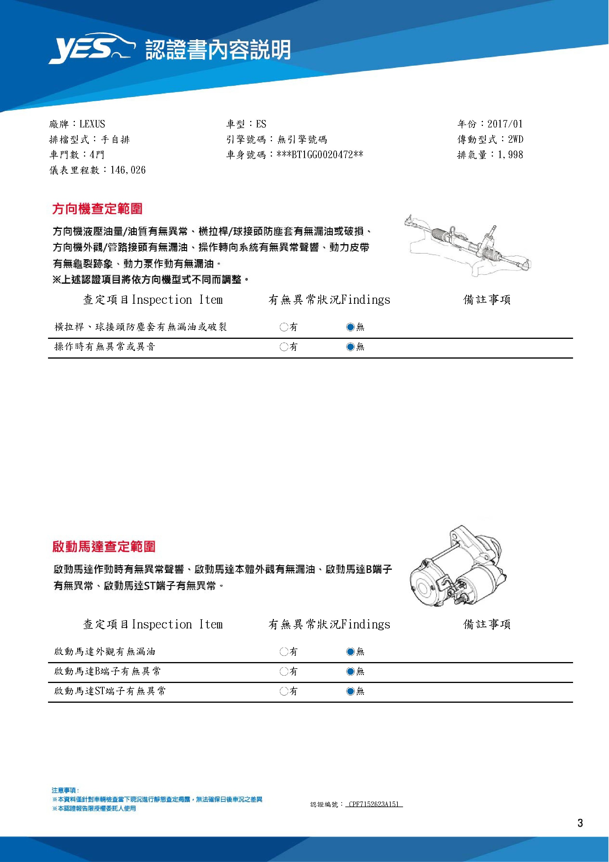 本車已由YES專業查定師完成 153 項檢測