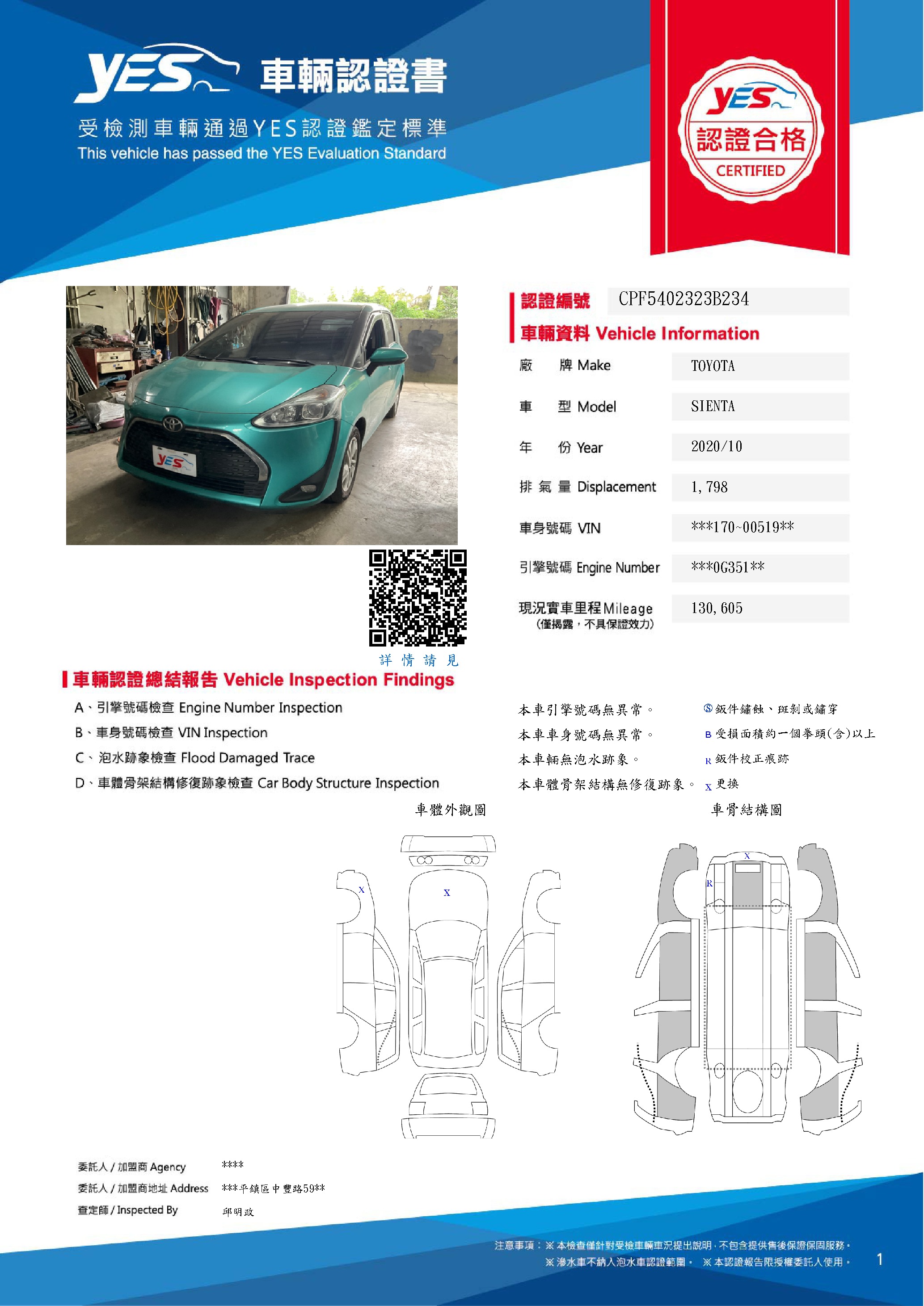 本車已由YES專業查定師完成 153 項檢測
