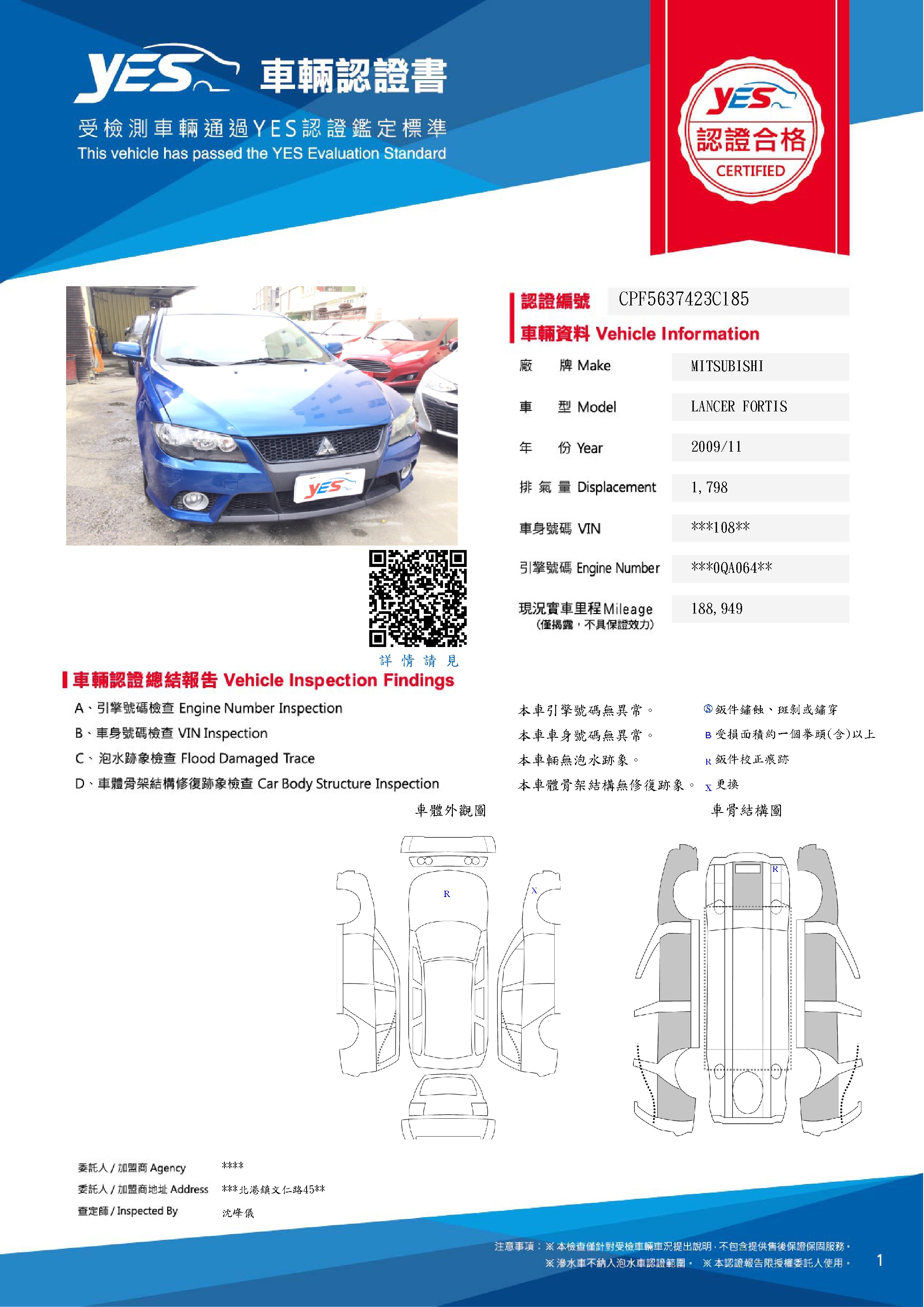 本車已由YES專業查定師完成 153 項檢測