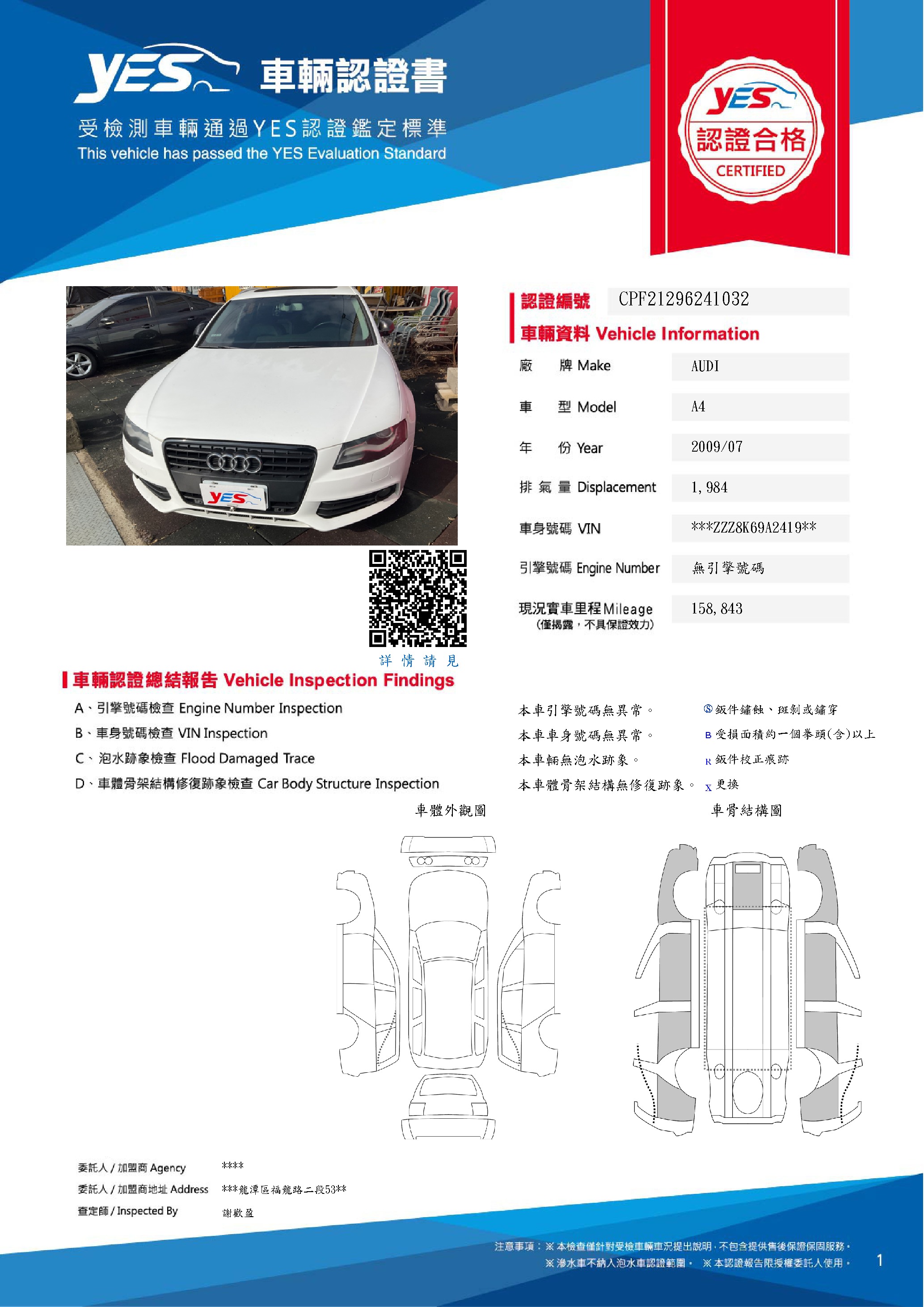 本車已由YES專業查定師完成 153 項檢測