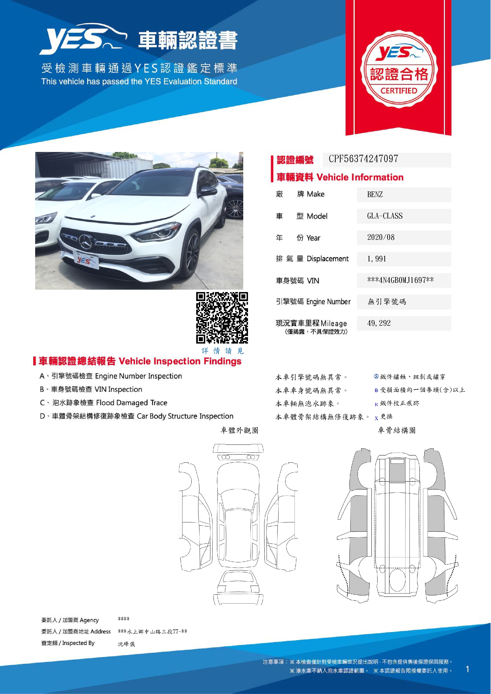 本車已由YES專業查定師完成 153 項檢測