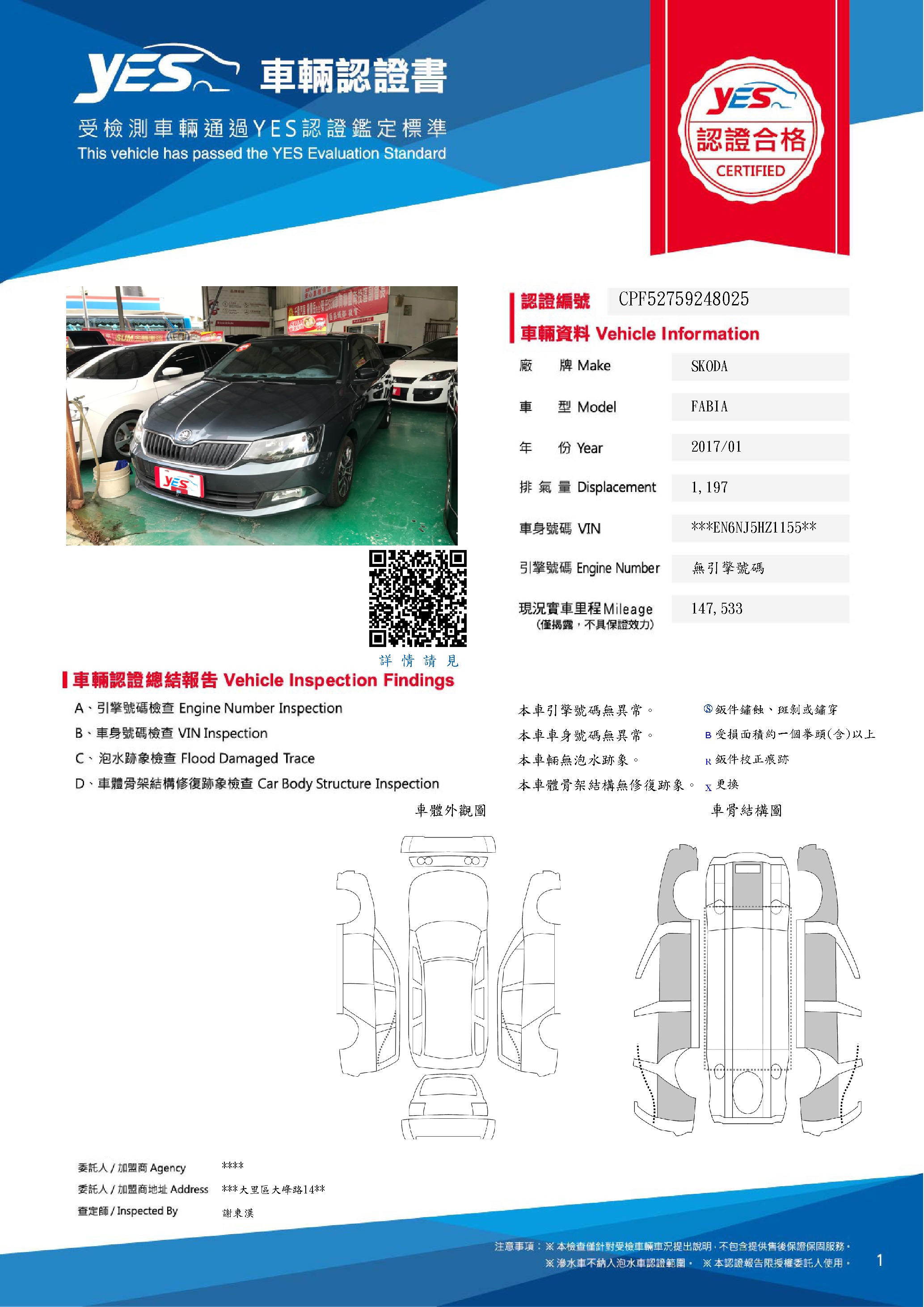 本車已由YES專業查定師完成 153 項檢測