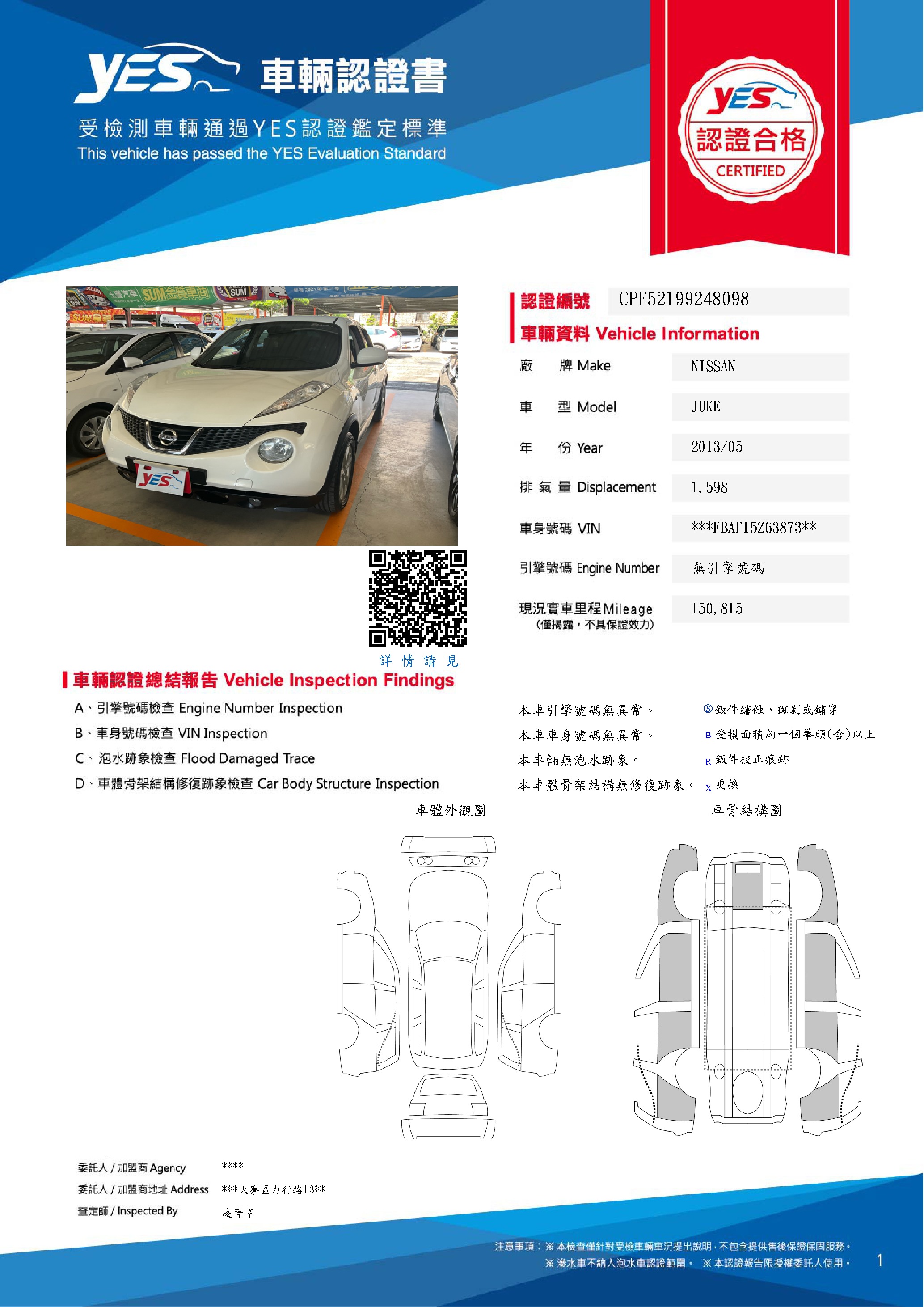本車已由YES專業查定師完成 153 項檢測