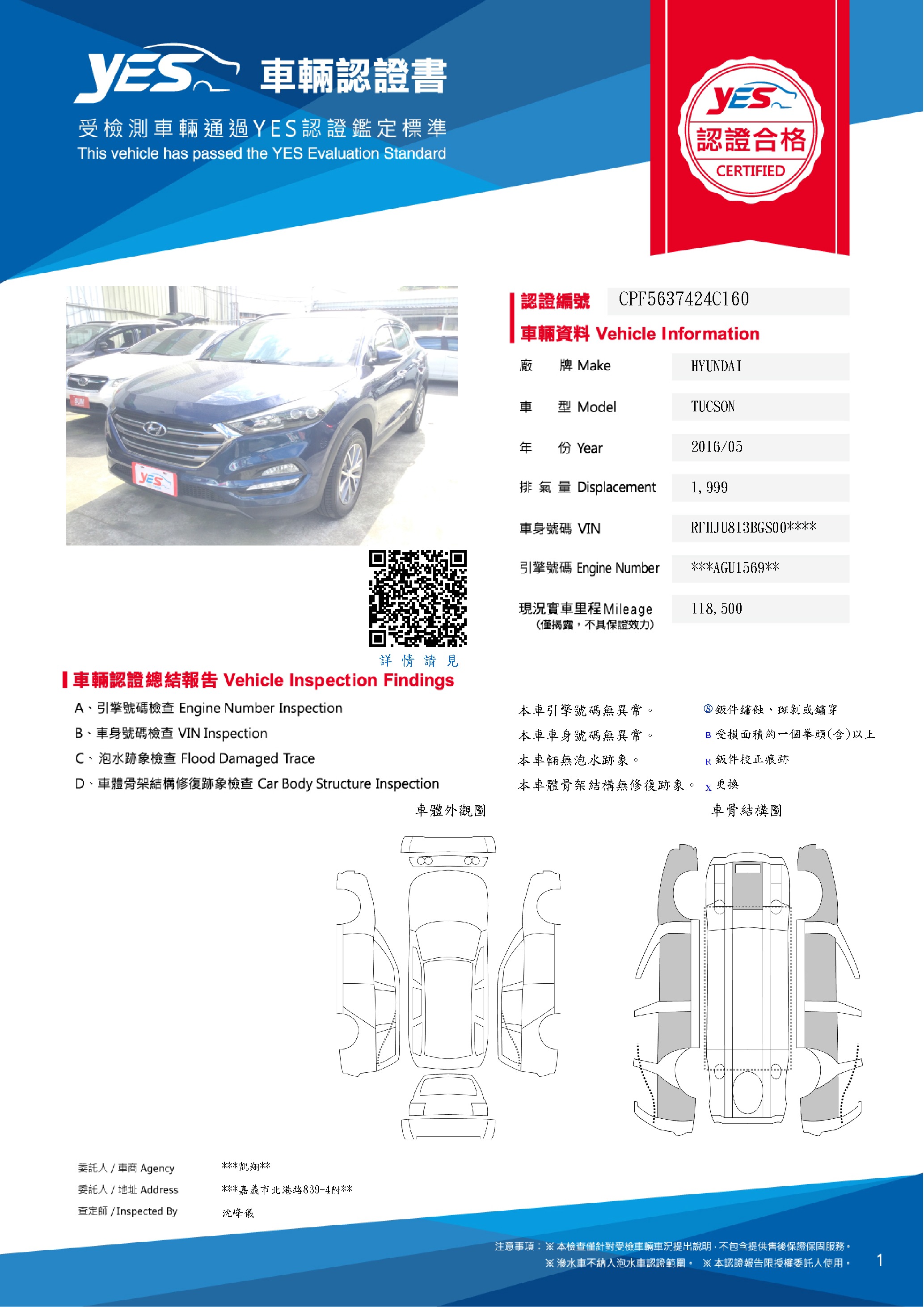 本車已由YES專業查定師完成 153 項檢測