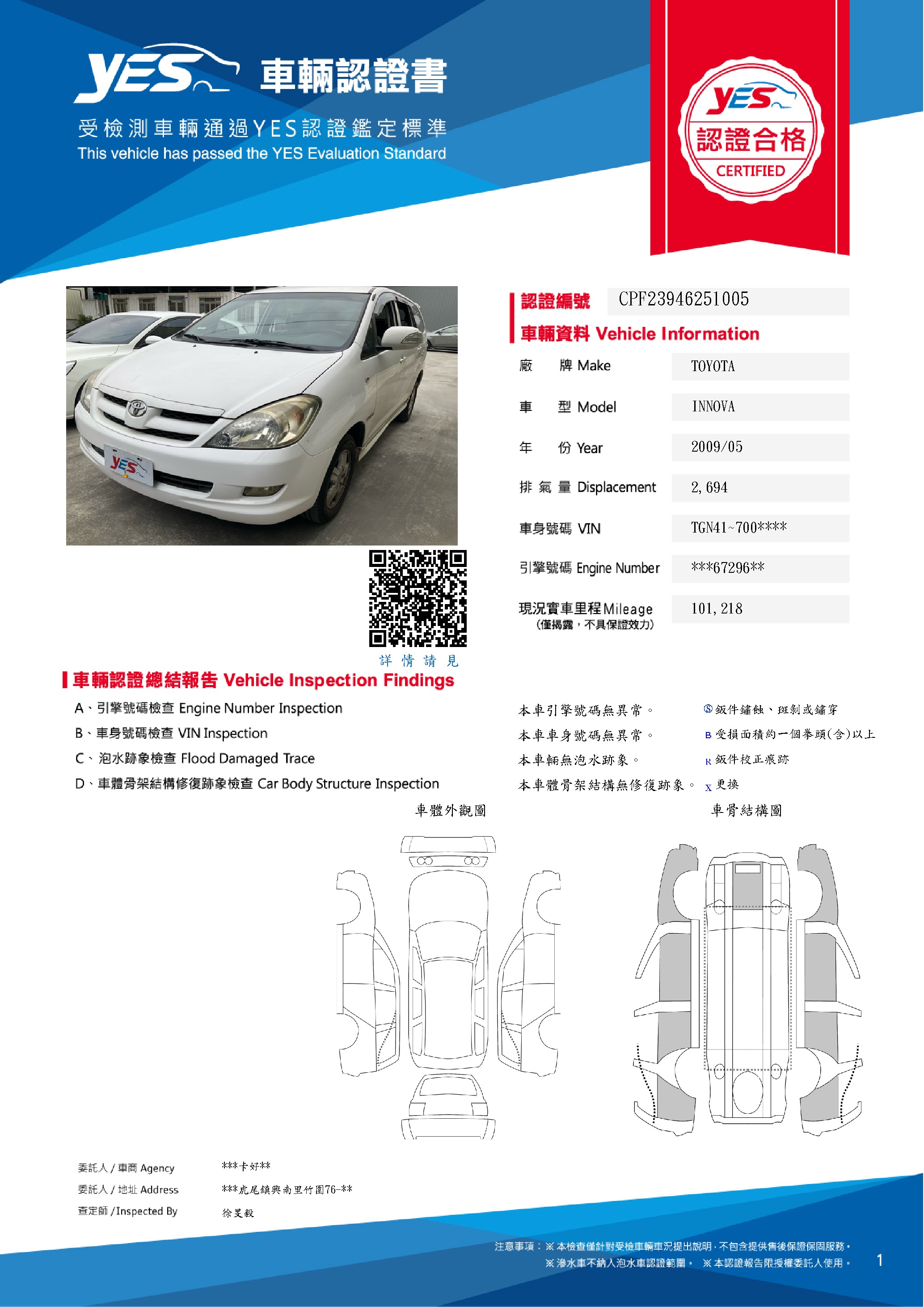 本車已由YES專業查定師完成 153 項檢測