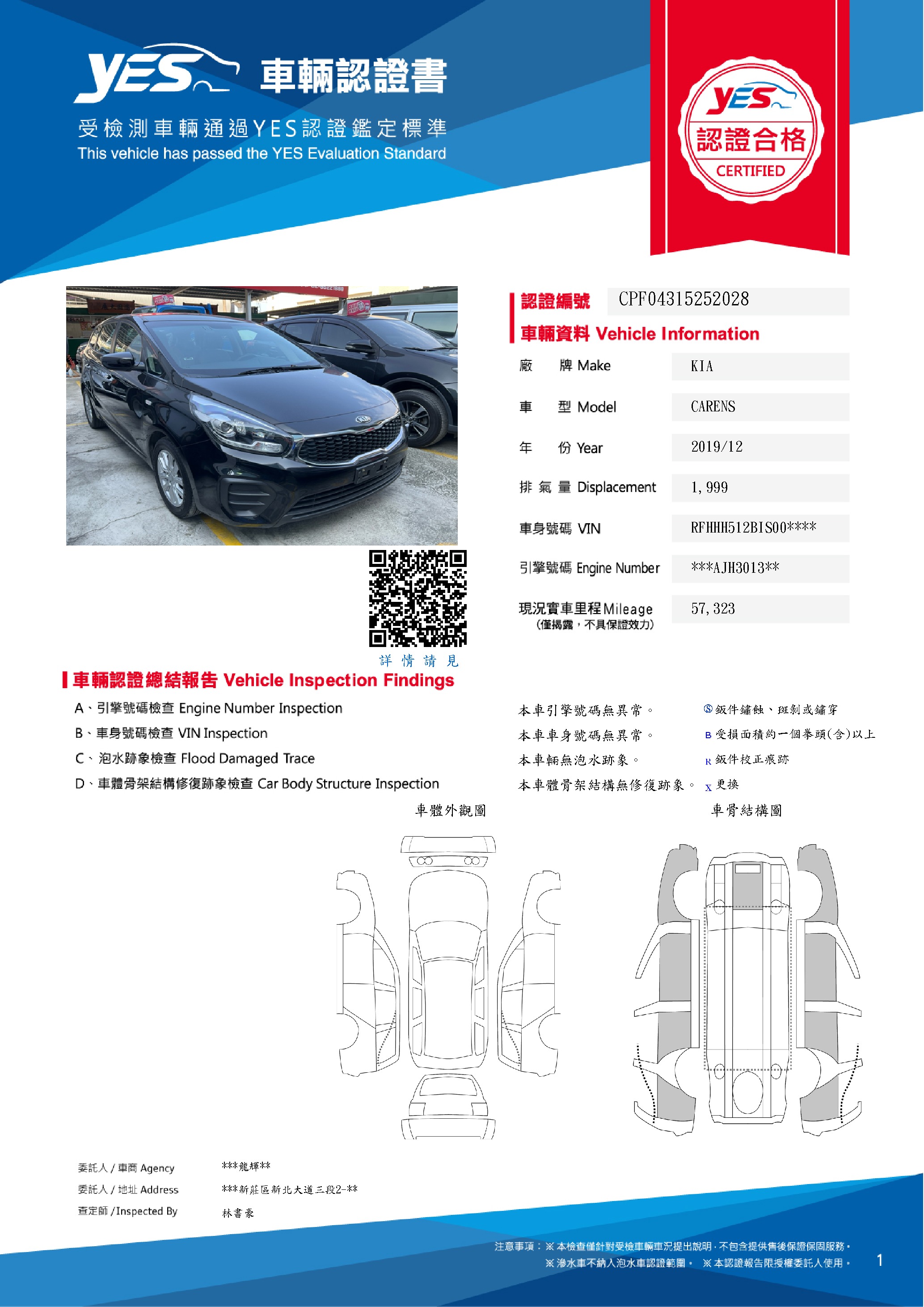 本車已由YES專業查定師完成 153 項檢測
