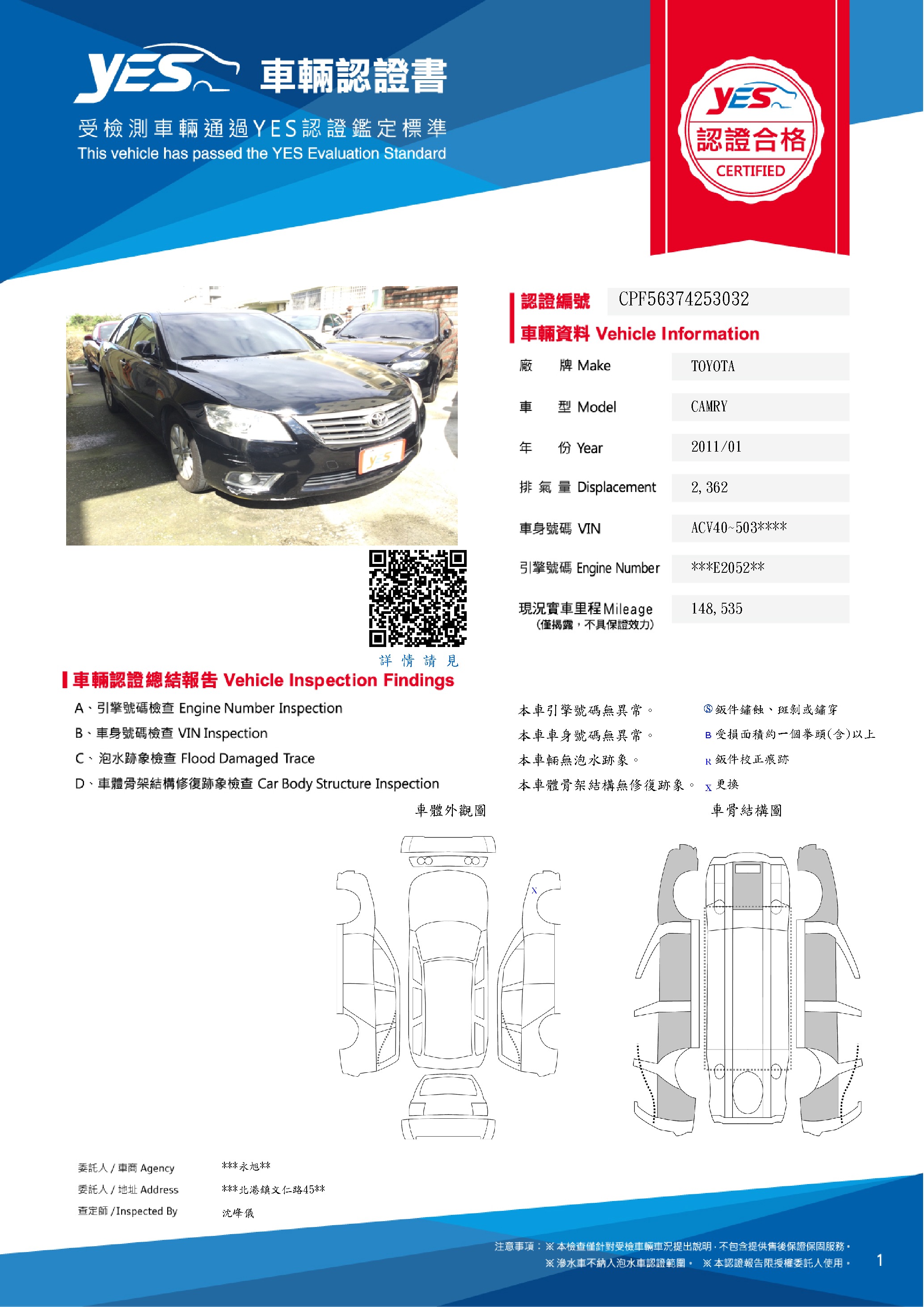 本車已由YES專業查定師完成 153 項檢測