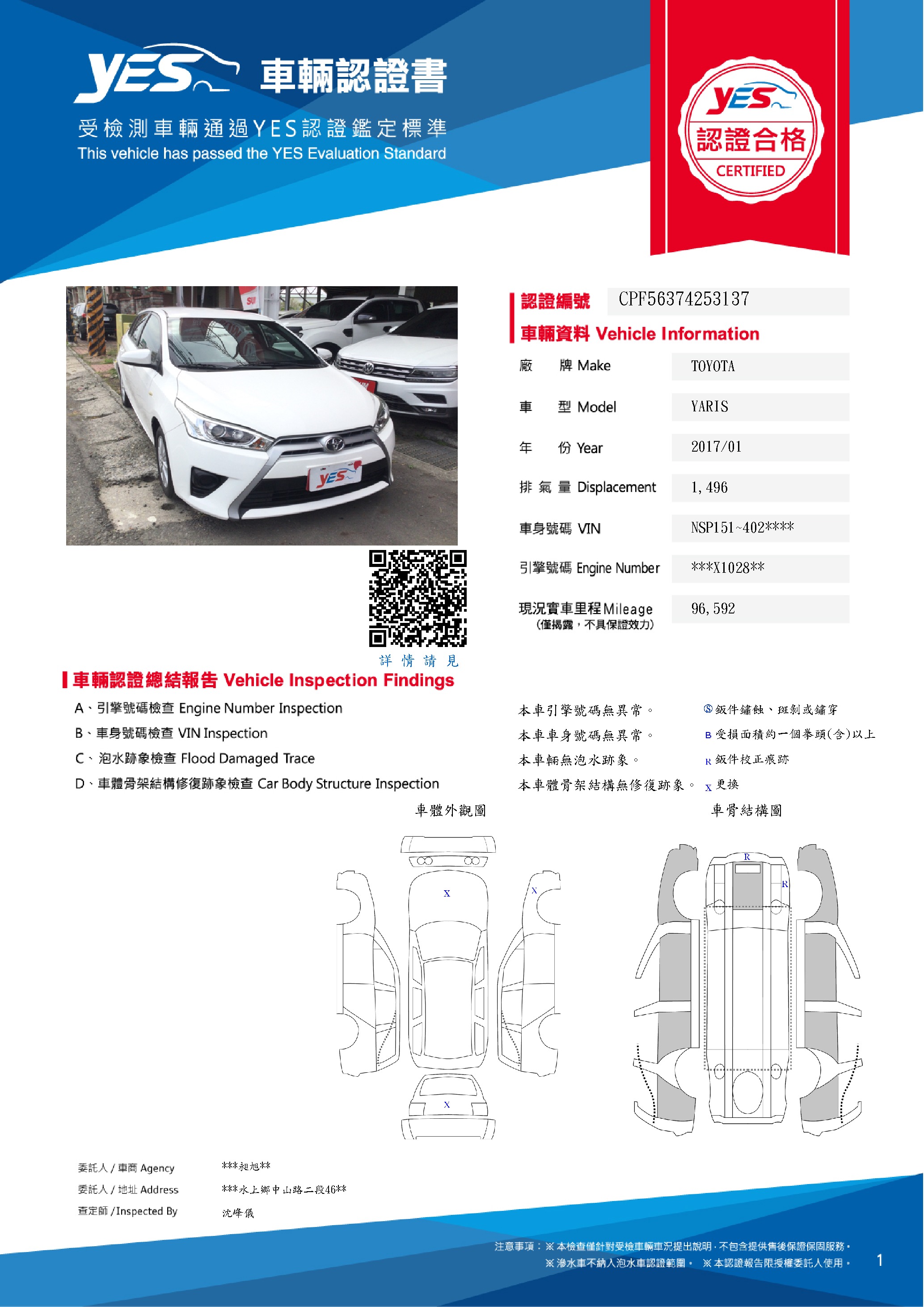 本車已由YES專業查定師完成 153 項檢測