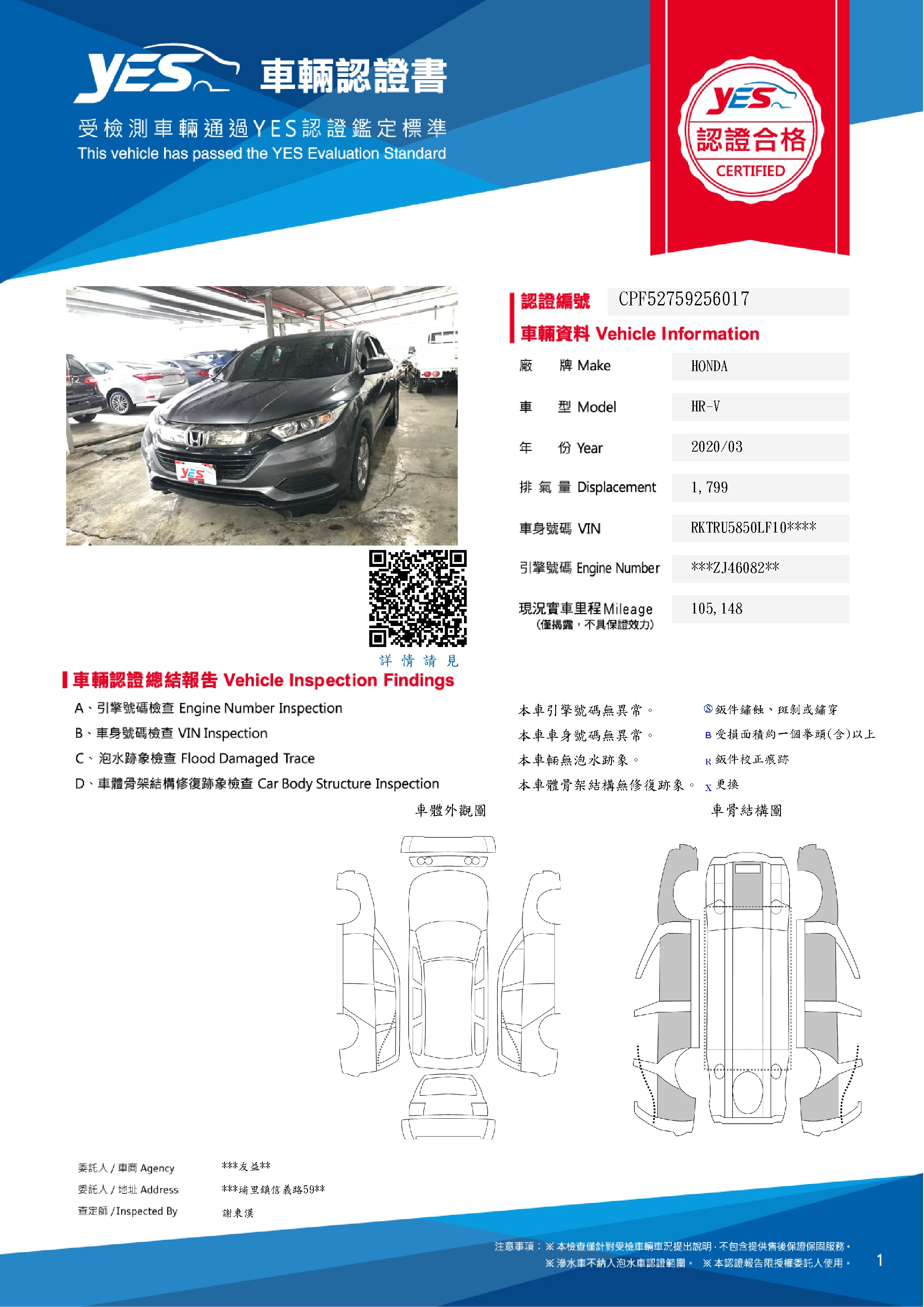 本車已由YES專業查定師完成 153 項檢測