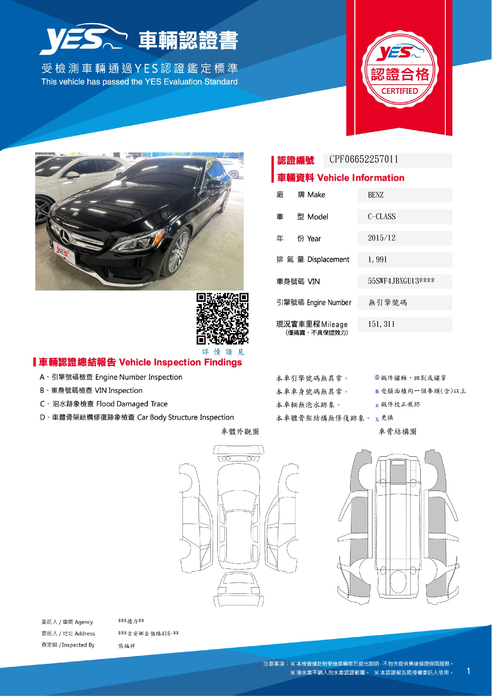 本車已由YES專業查定師完成 153 項檢測