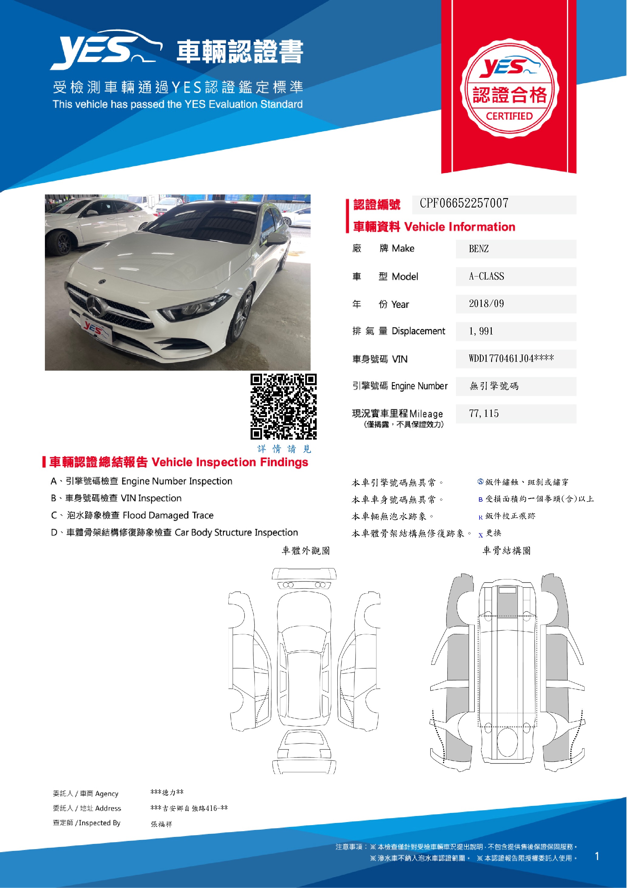 本車已由YES專業查定師完成 153 項檢測