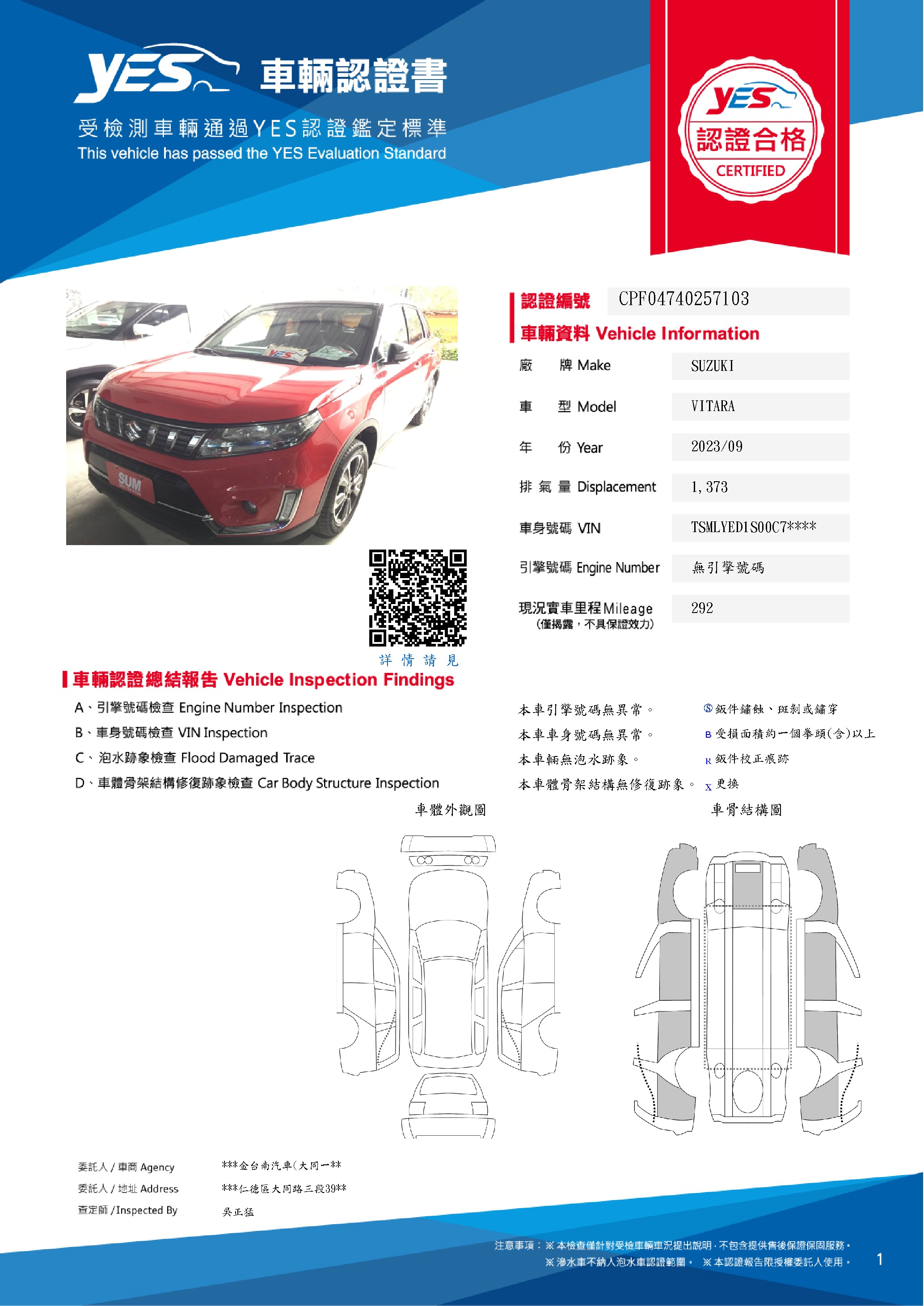 本車已由YES專業查定師完成 153 項檢測