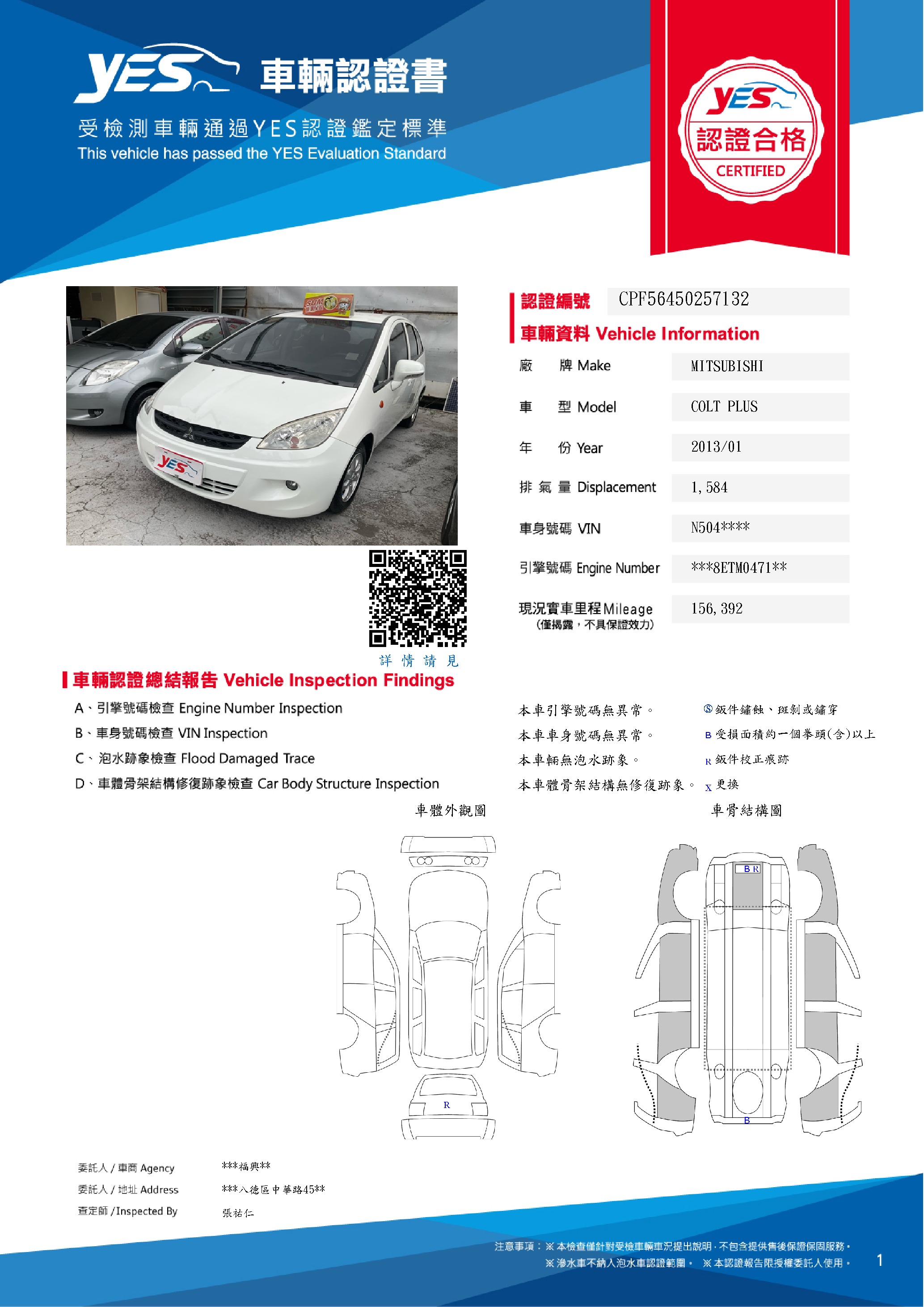 本車已由YES專業查定師完成 153 項檢測