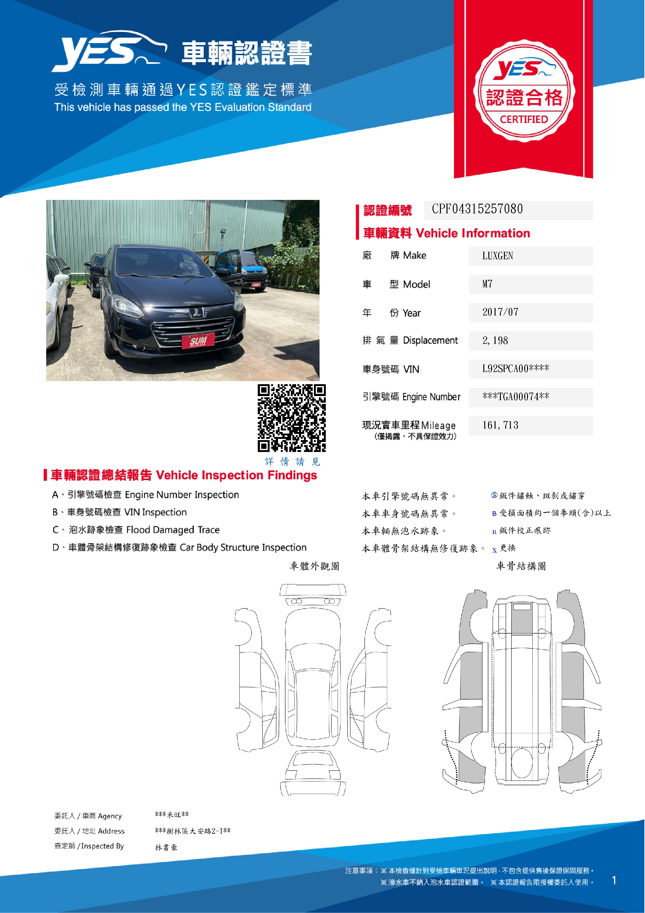 本車已由YES專業查定師完成 153 項檢測