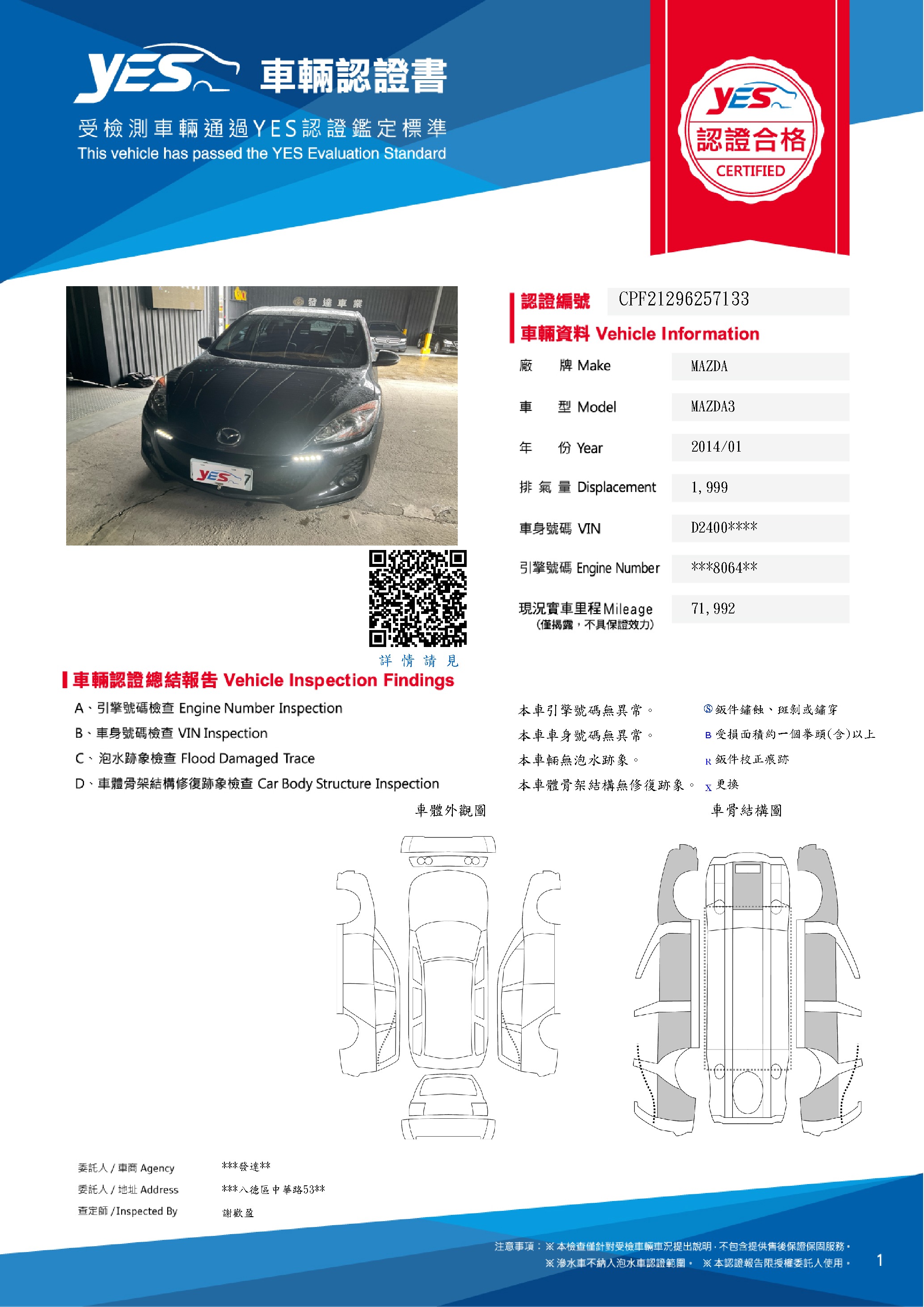 本車已由YES專業查定師完成 153 項檢測