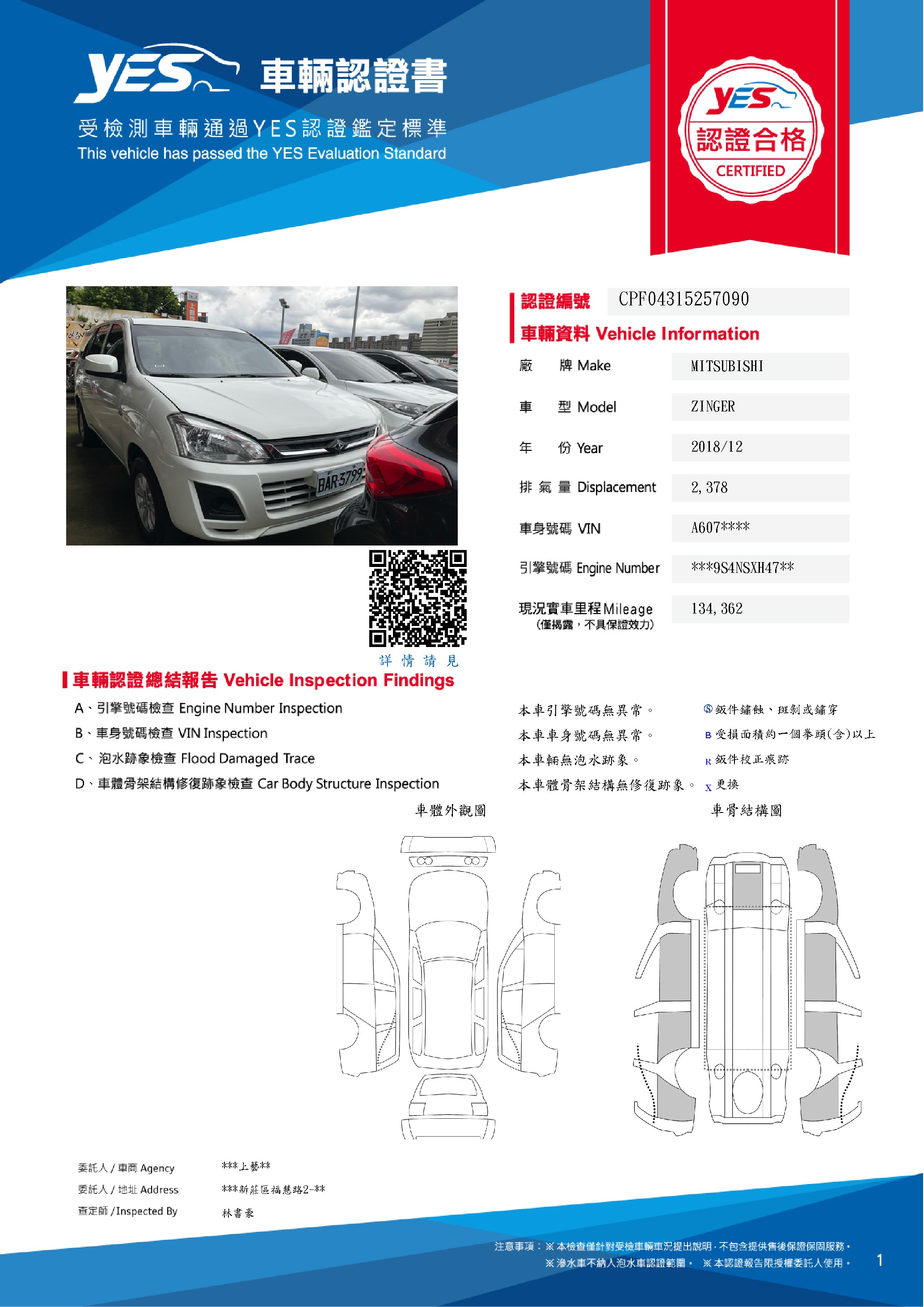 本車已由YES專業查定師完成 153 項檢測