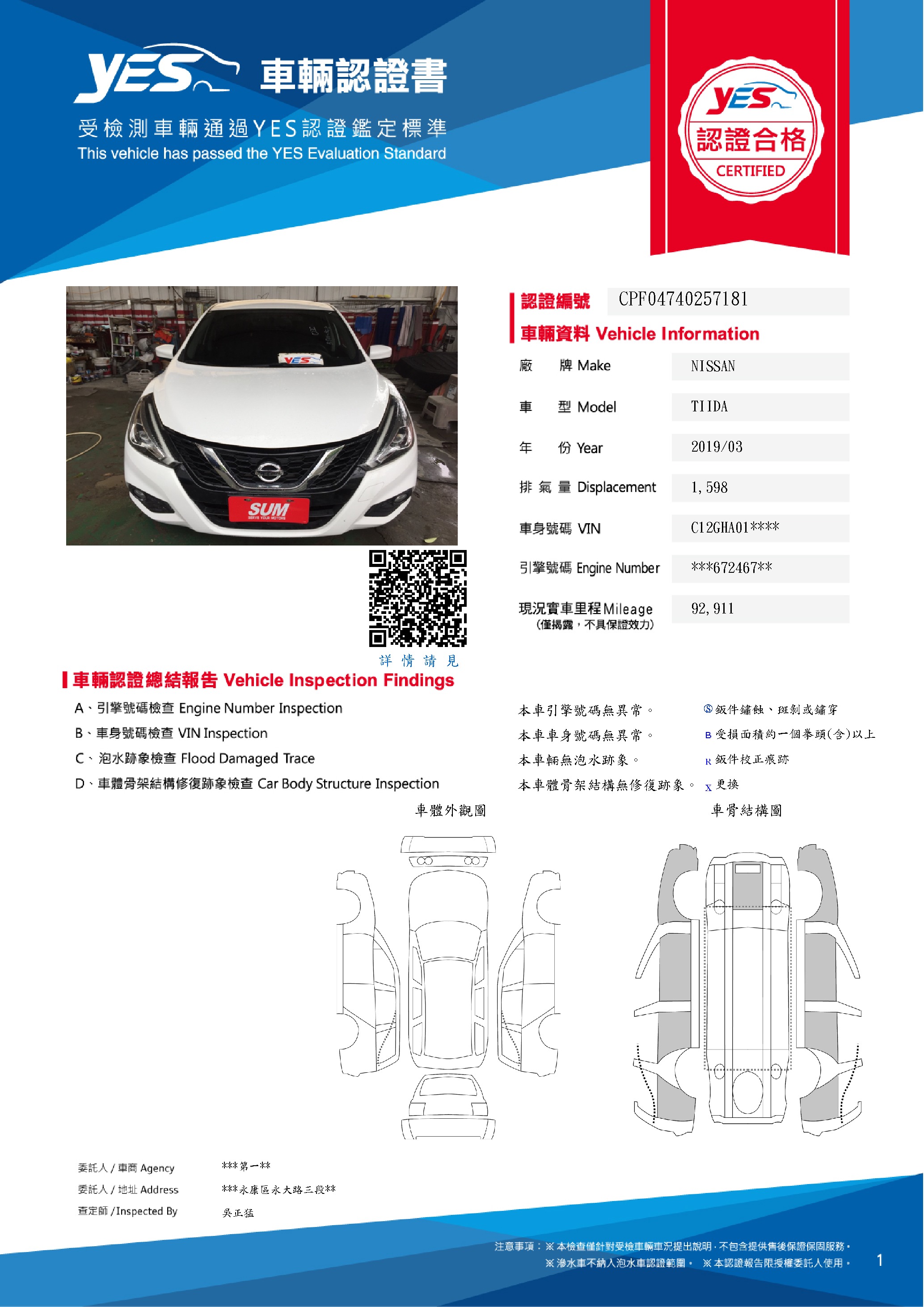 本車已由YES專業查定師完成 153 項檢測