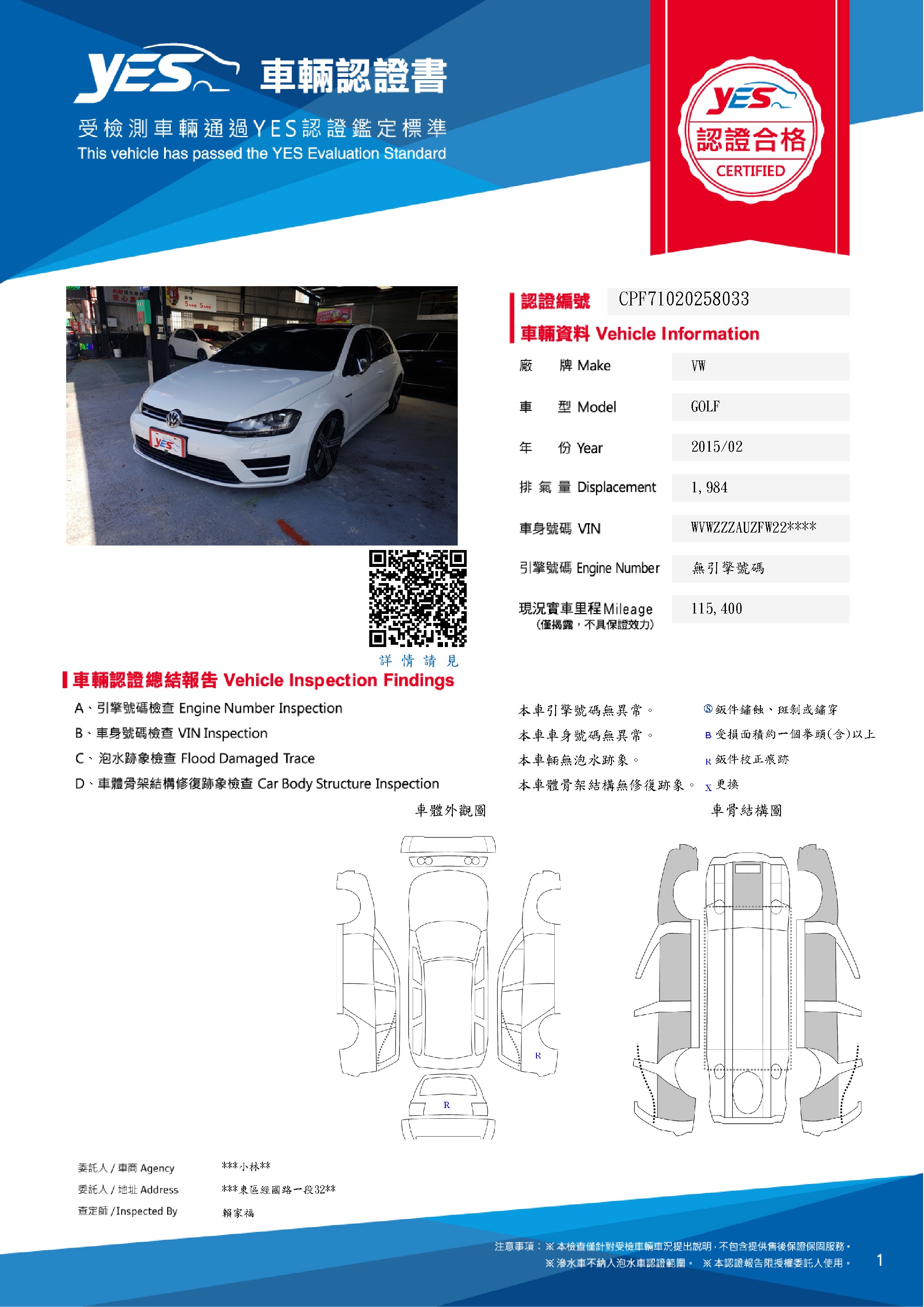 - YES專業查定師:賴家福