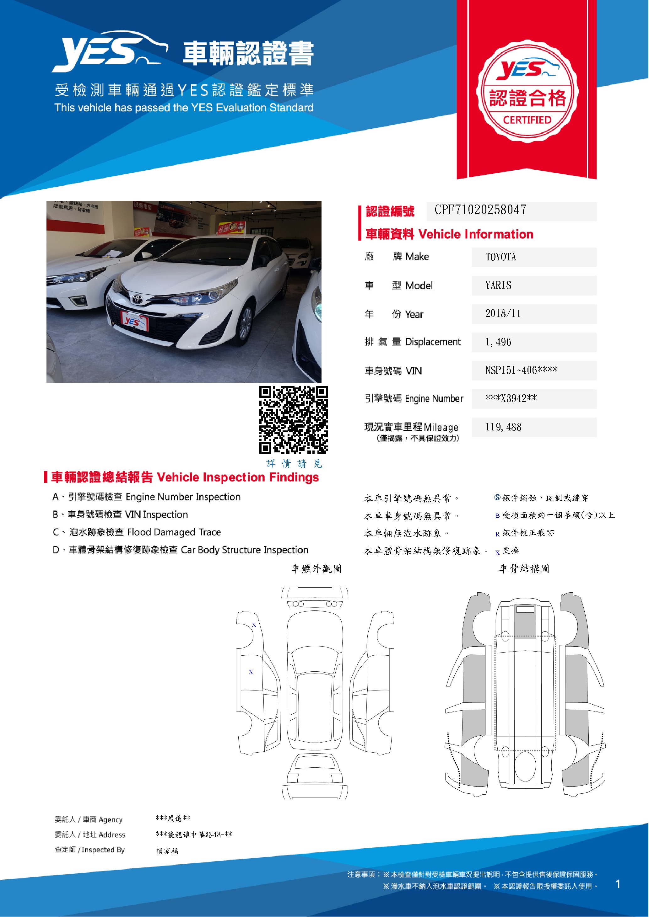 本車已由YES專業查定師完成 153 項檢測