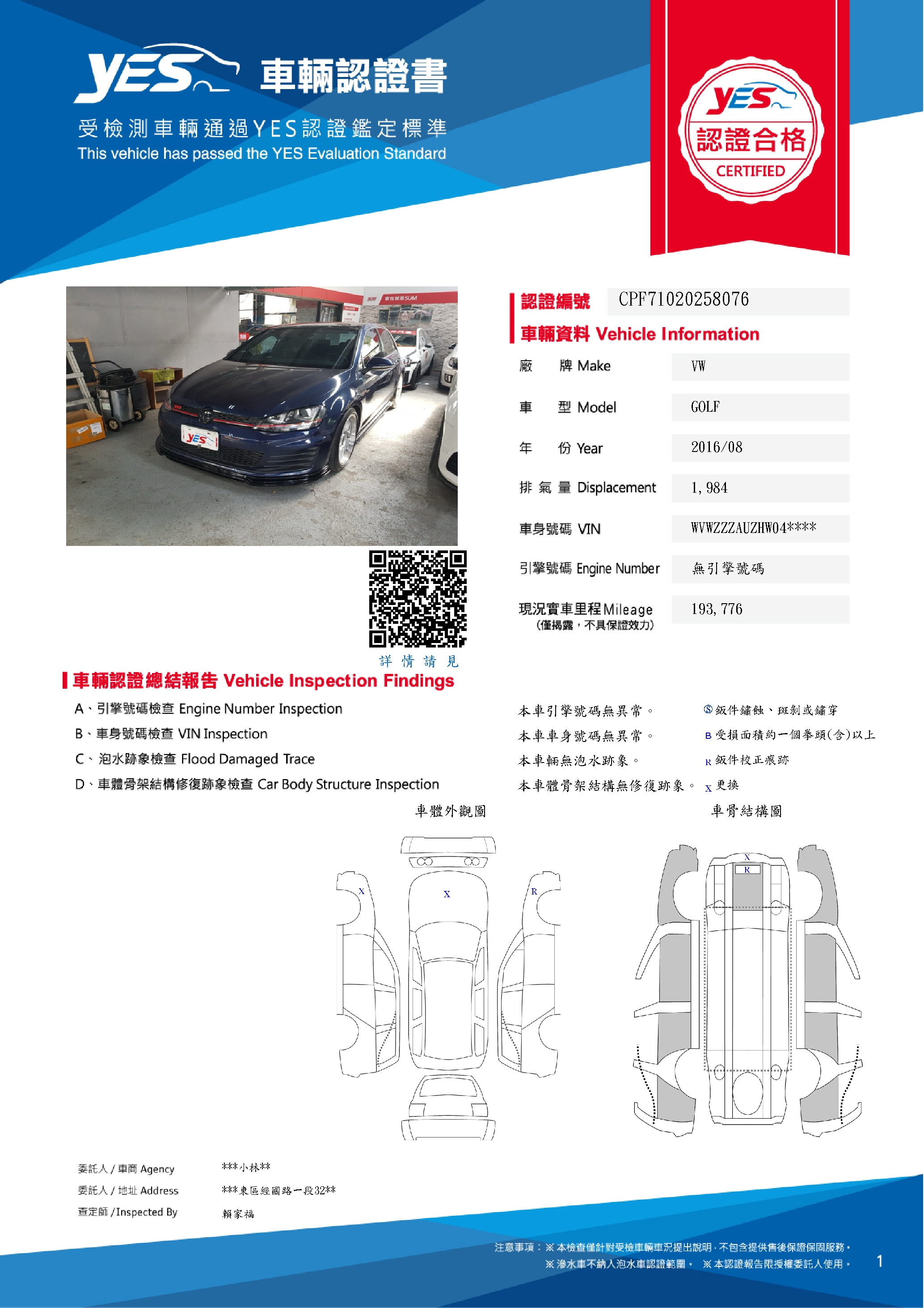 • YES專業查定師:賴家福