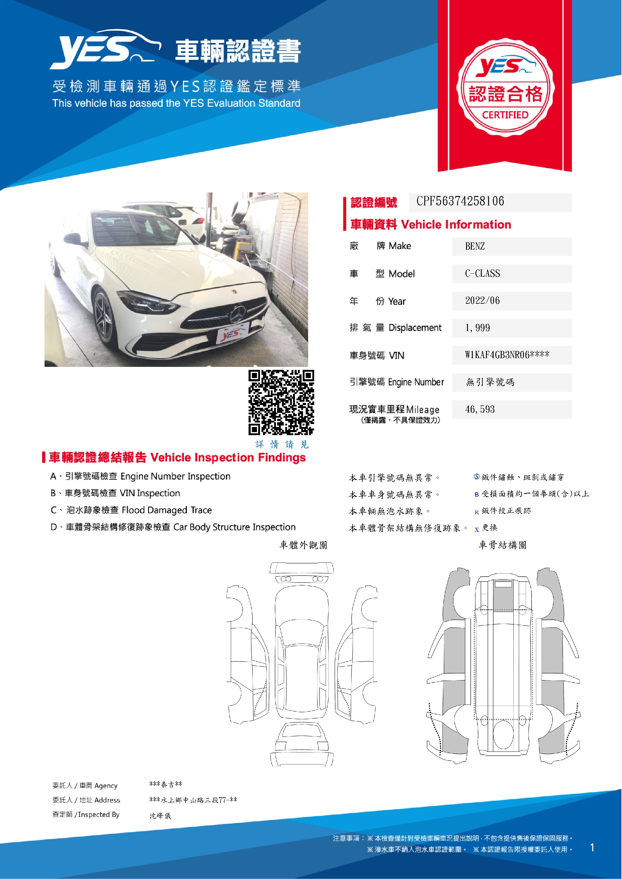 本車已由YES專業查定師完成 153 項檢測