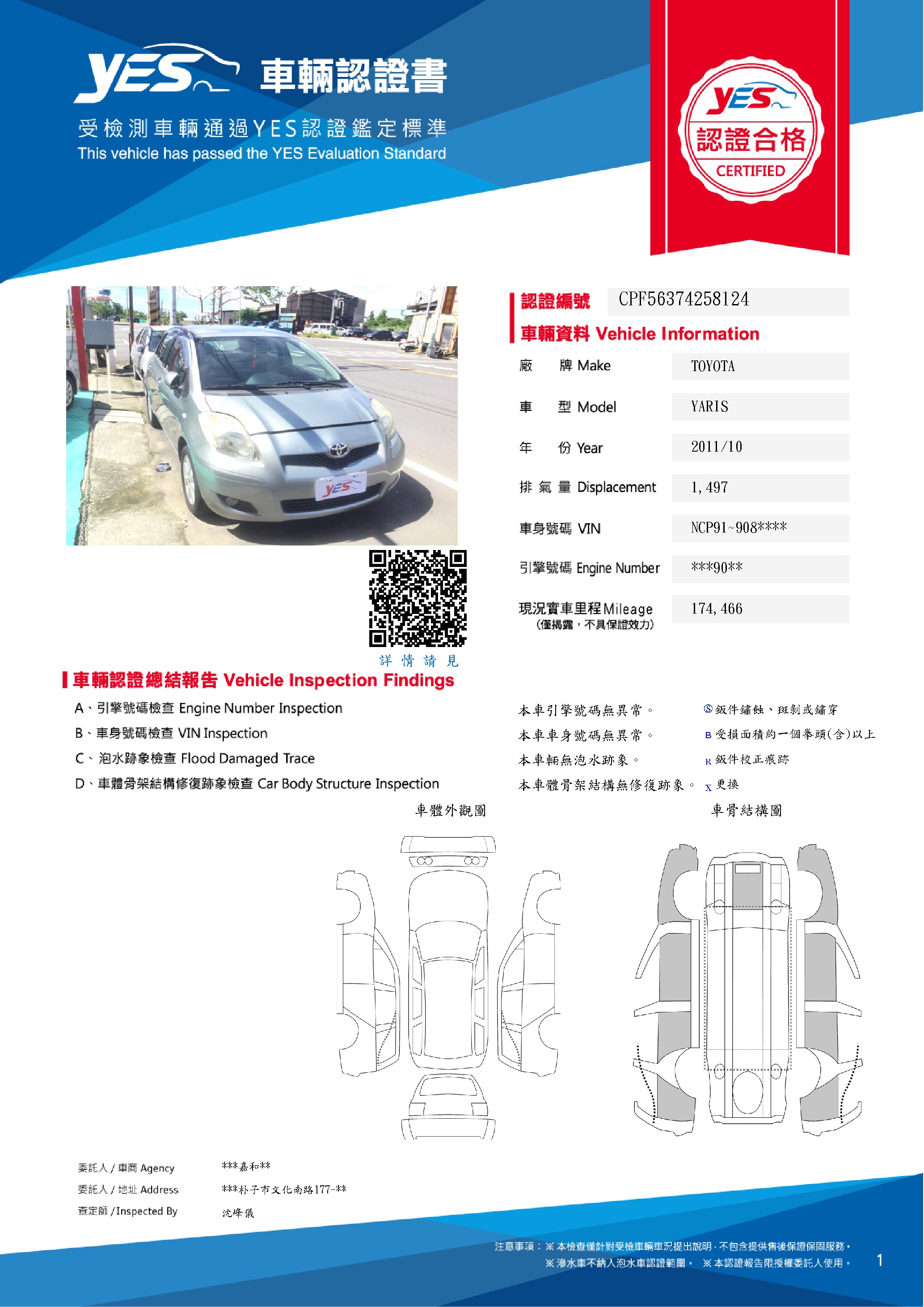 本車已由YES專業查定師完成 153 項檢測