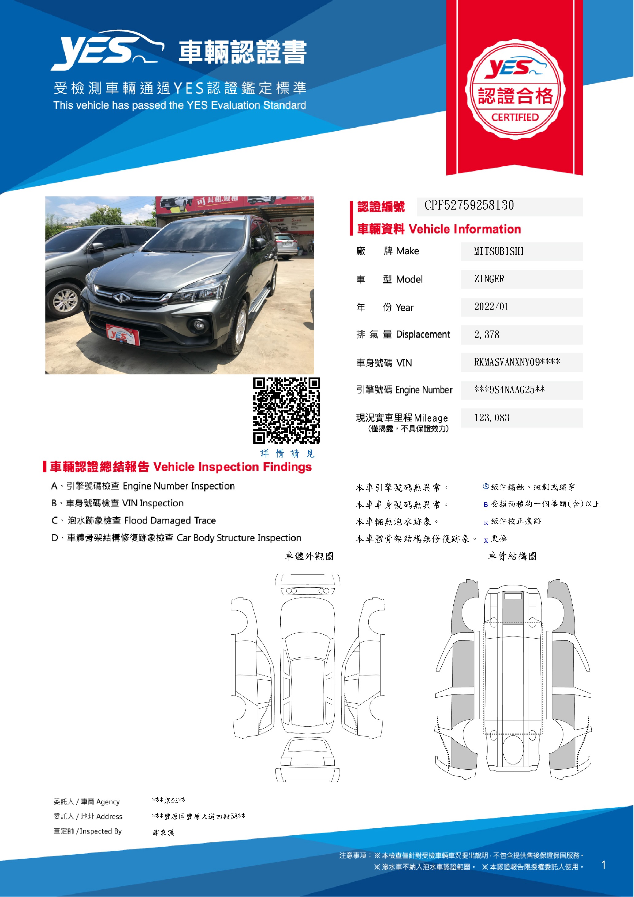 本車已由YES專業查定師完成 153 項檢測