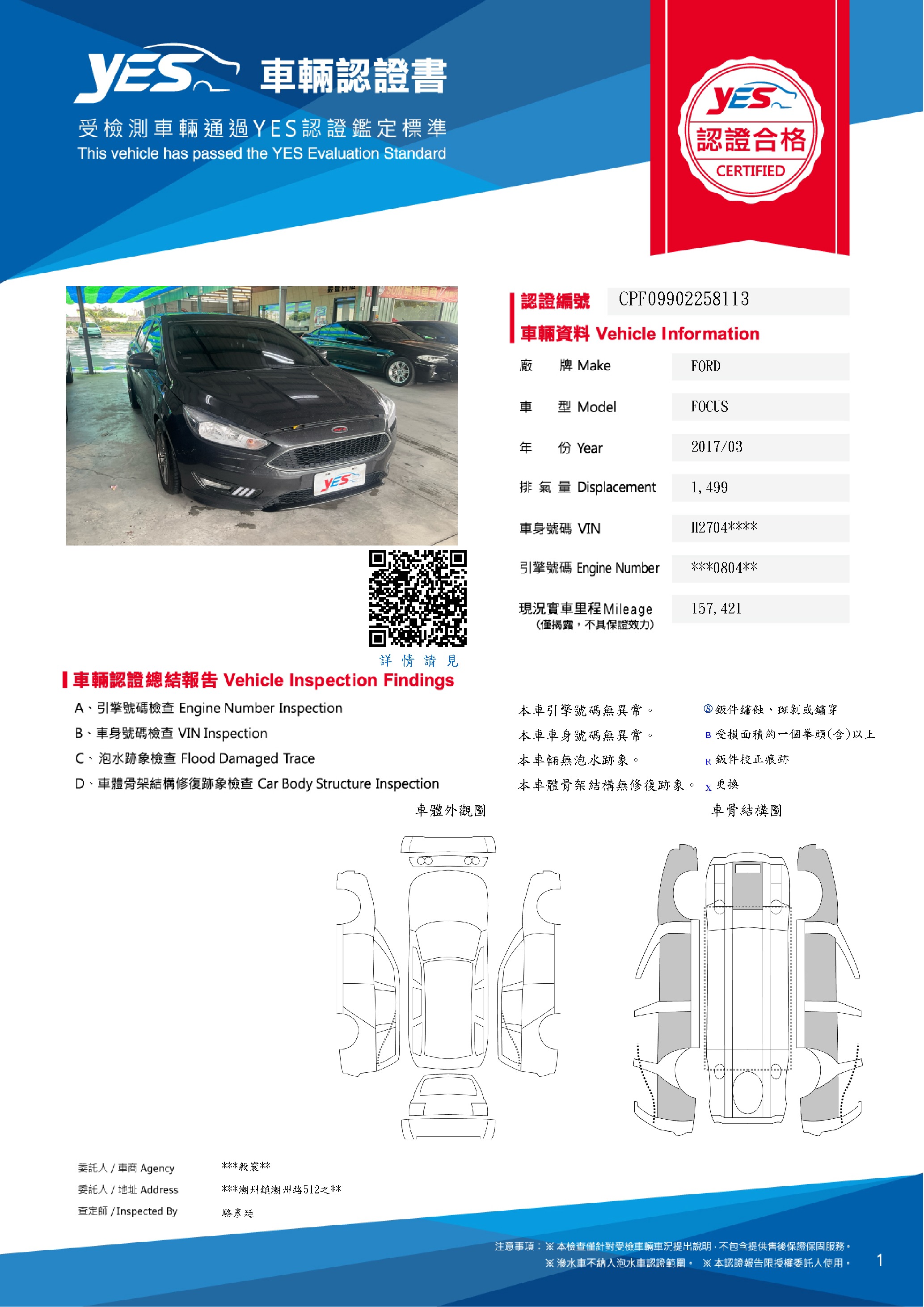 本車已由YES專業查定師完成 153 項檢測
