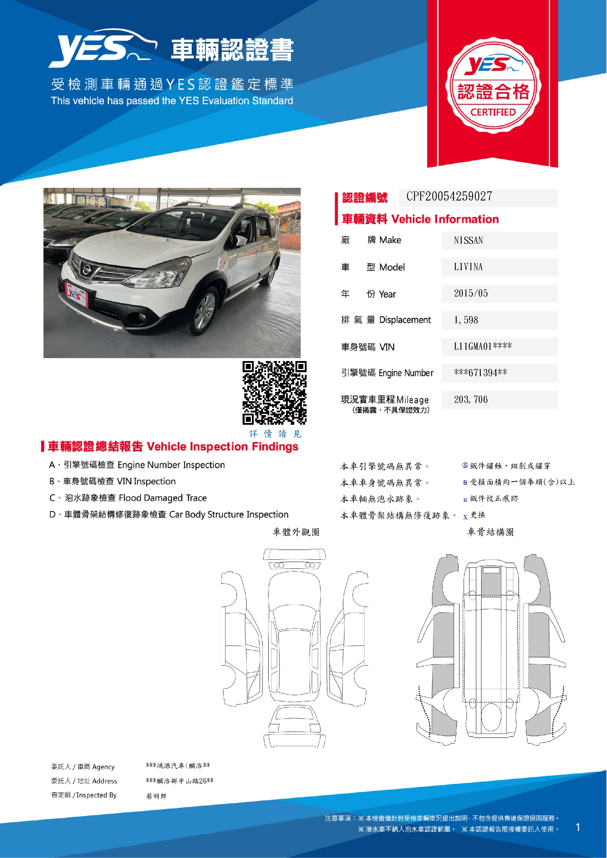 本車已由YES專業查定師完成 153 項檢測