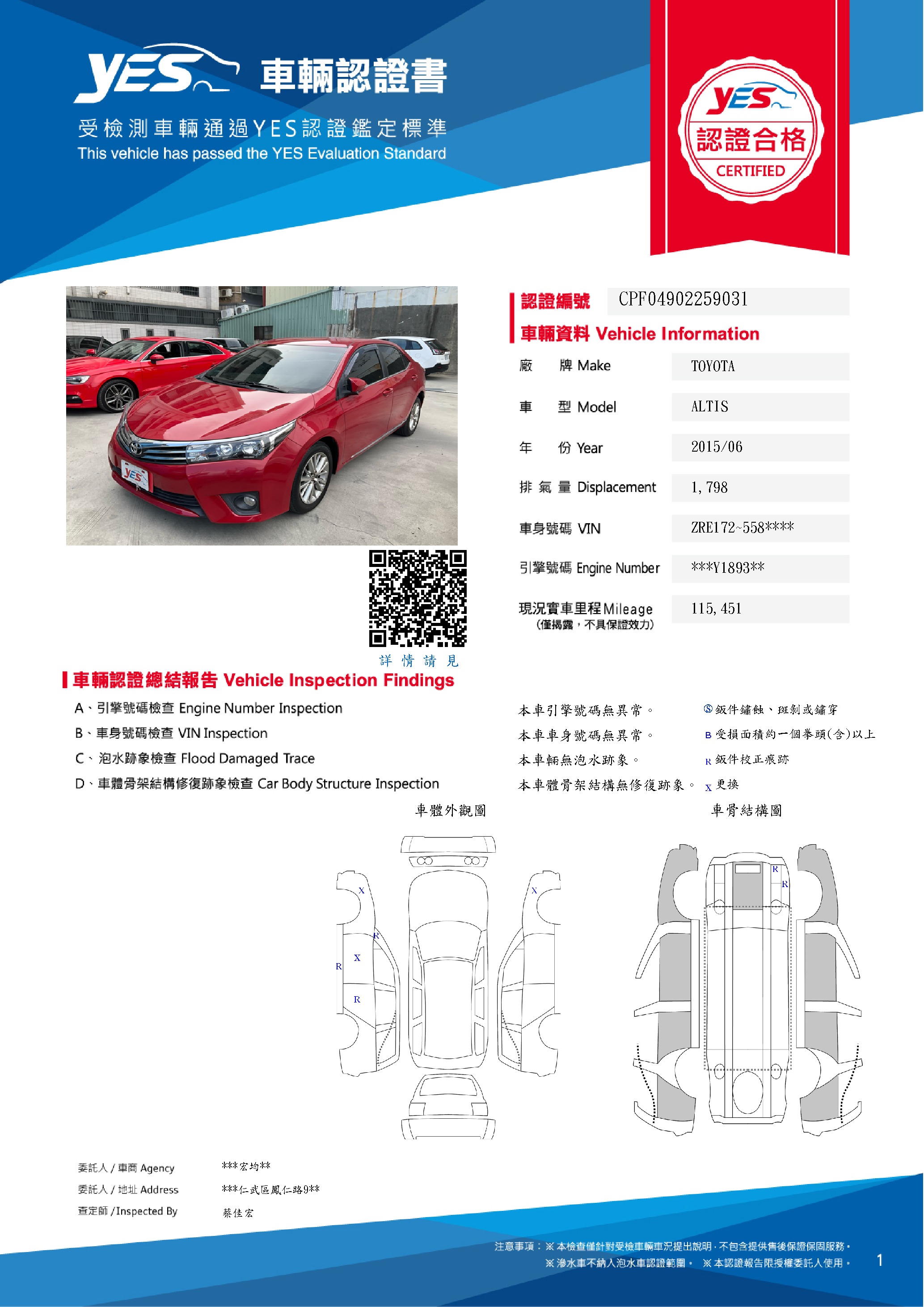 本車已由YES專業查定師完成 153 項檢測
