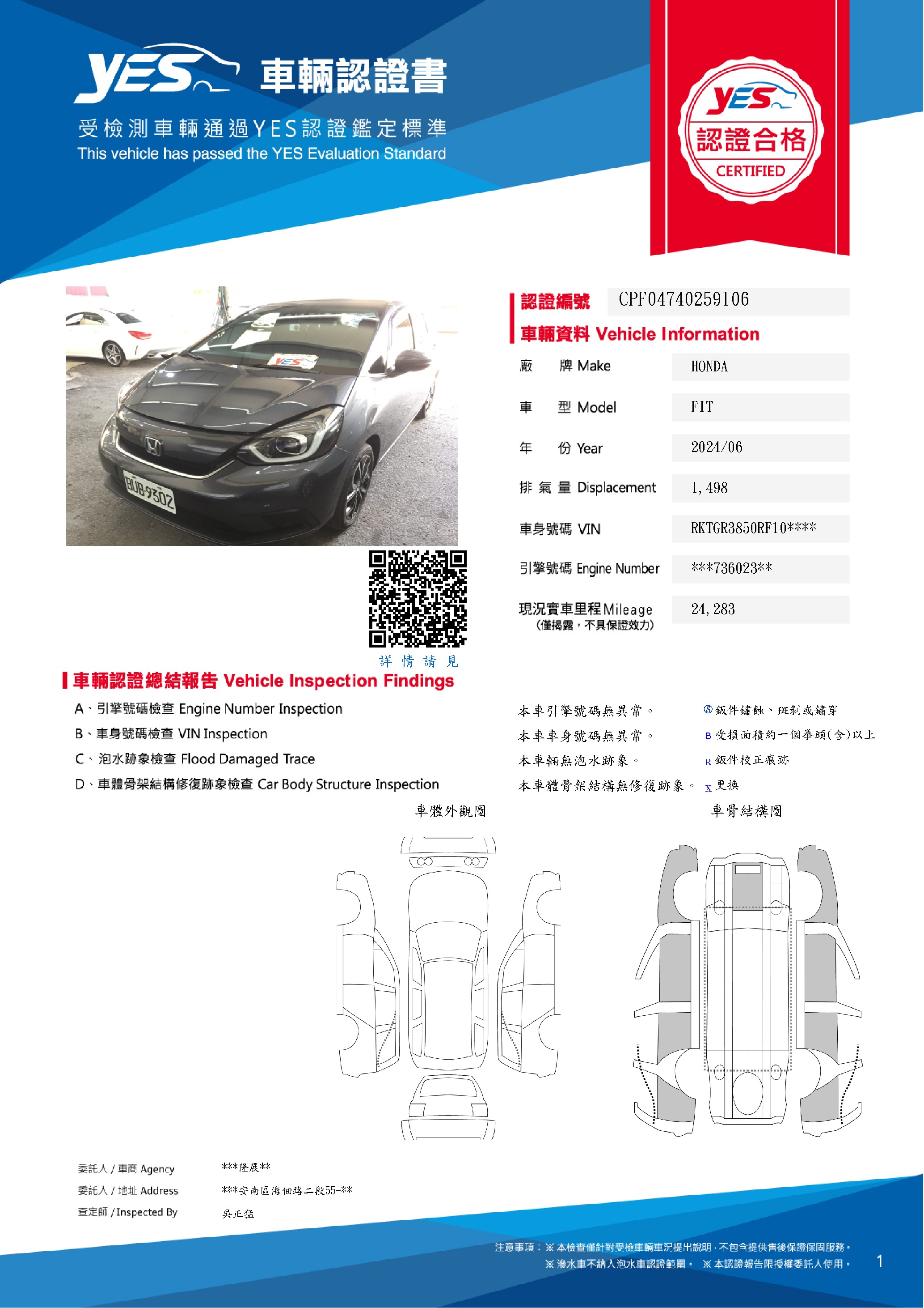 本車已由YES專業查定師完成 153 項檢測