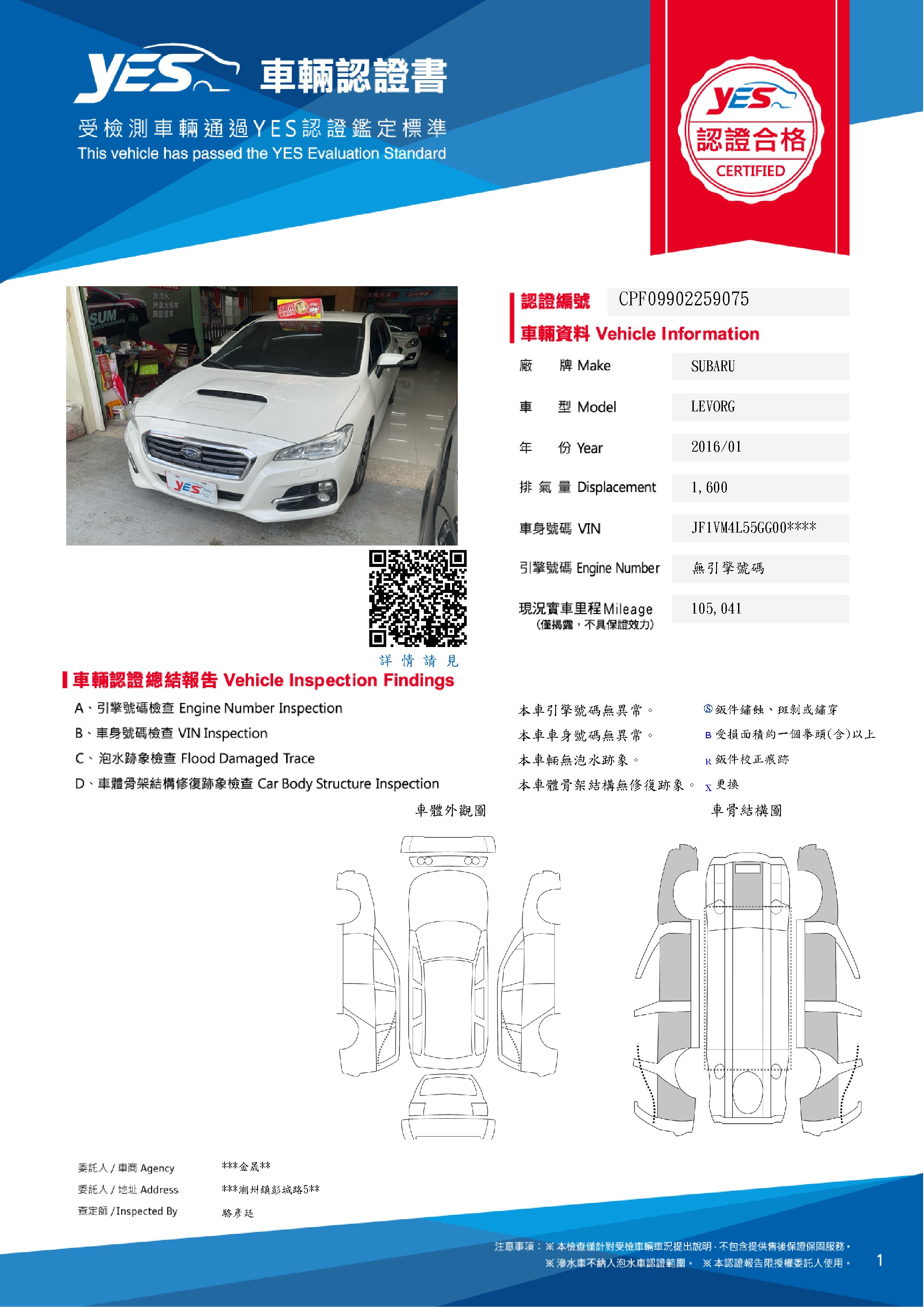 本車已由YES專業查定師完成 153 項檢測