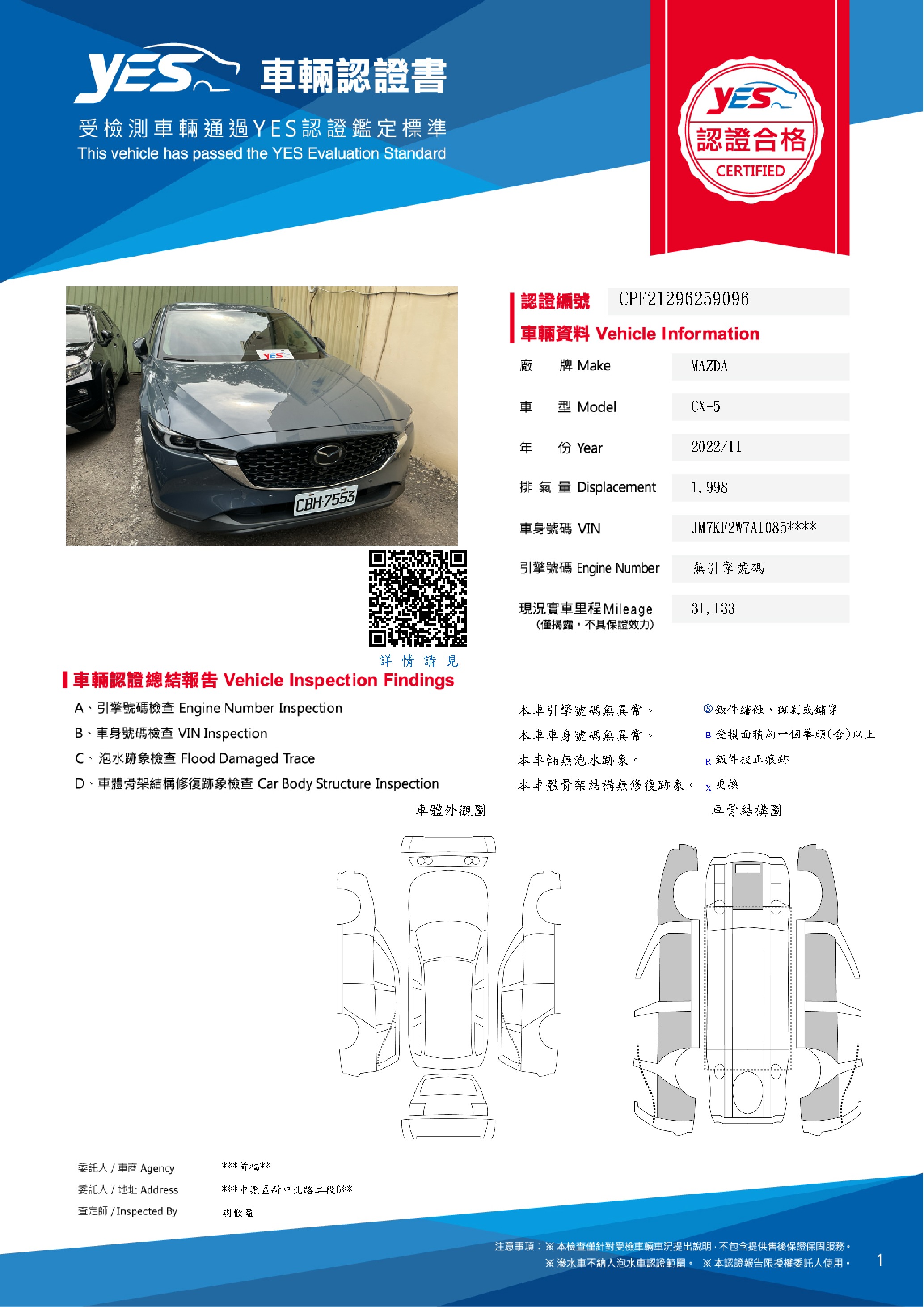 本車已由YES專業查定師完成 153 項檢測