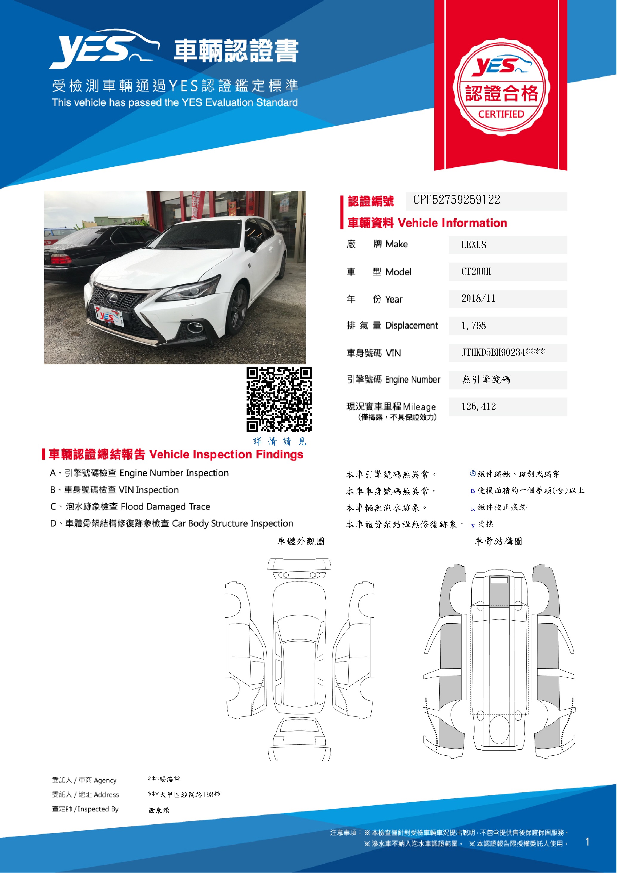 本車已由YES專業查定師完成 153 項檢測