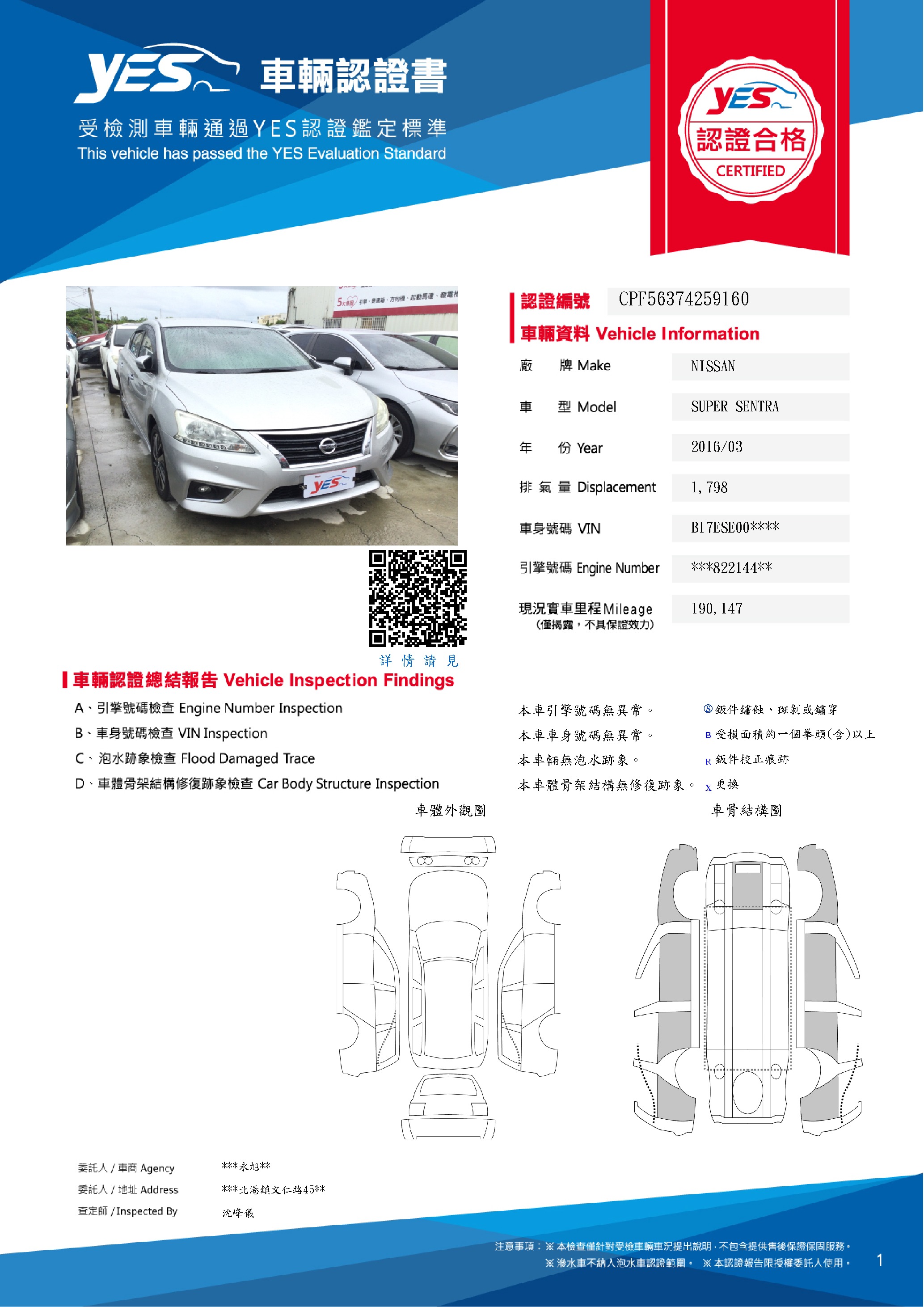 本車已由YES專業查定師完成 153 項檢測