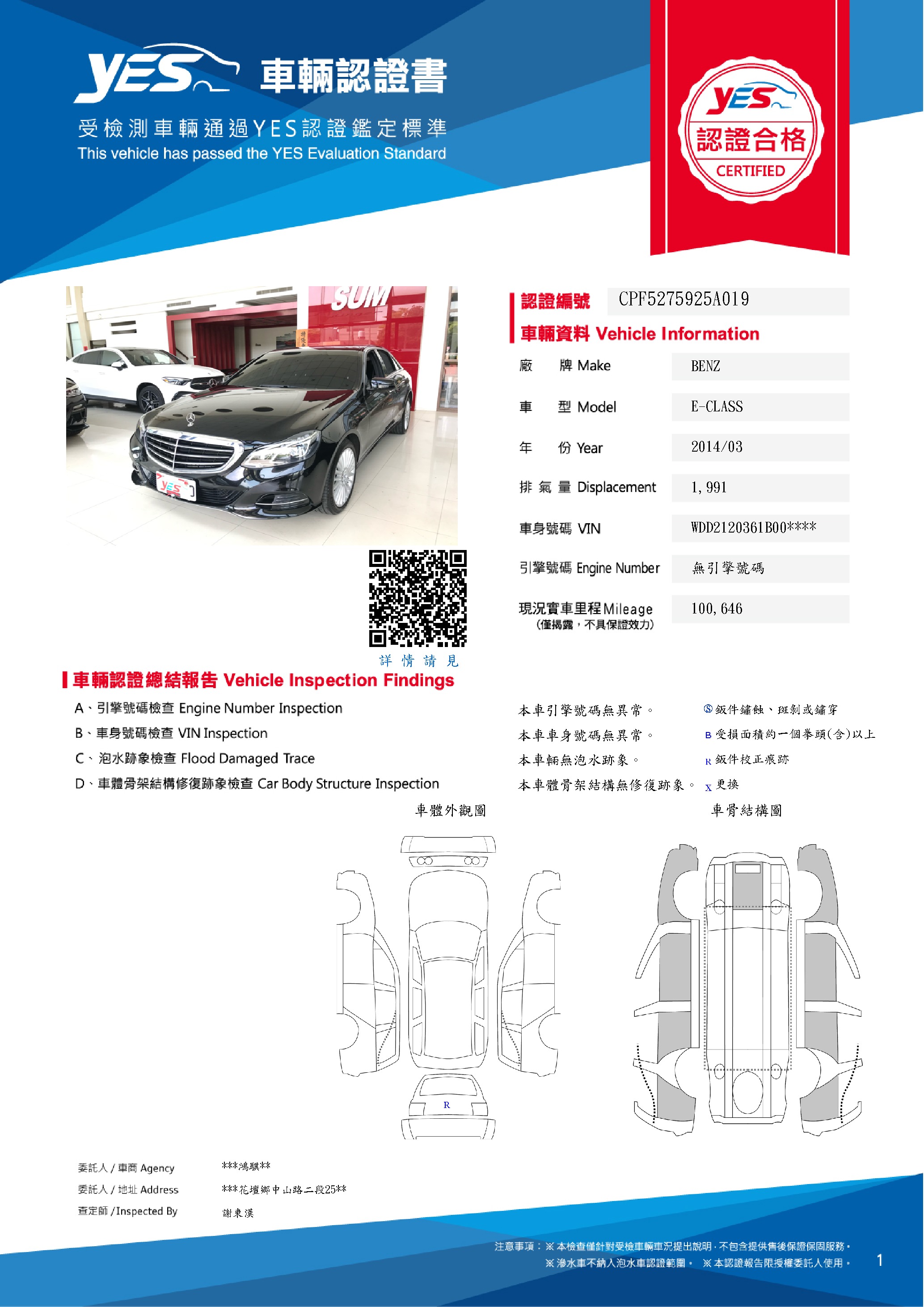 本車已由YES專業查定師完成 153 項檢測