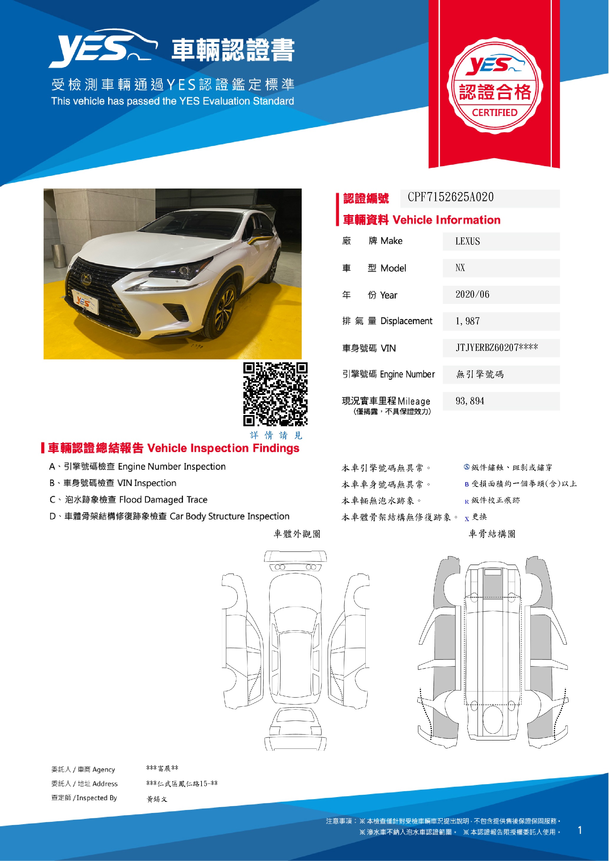 • YES專業查定師:黃錫文