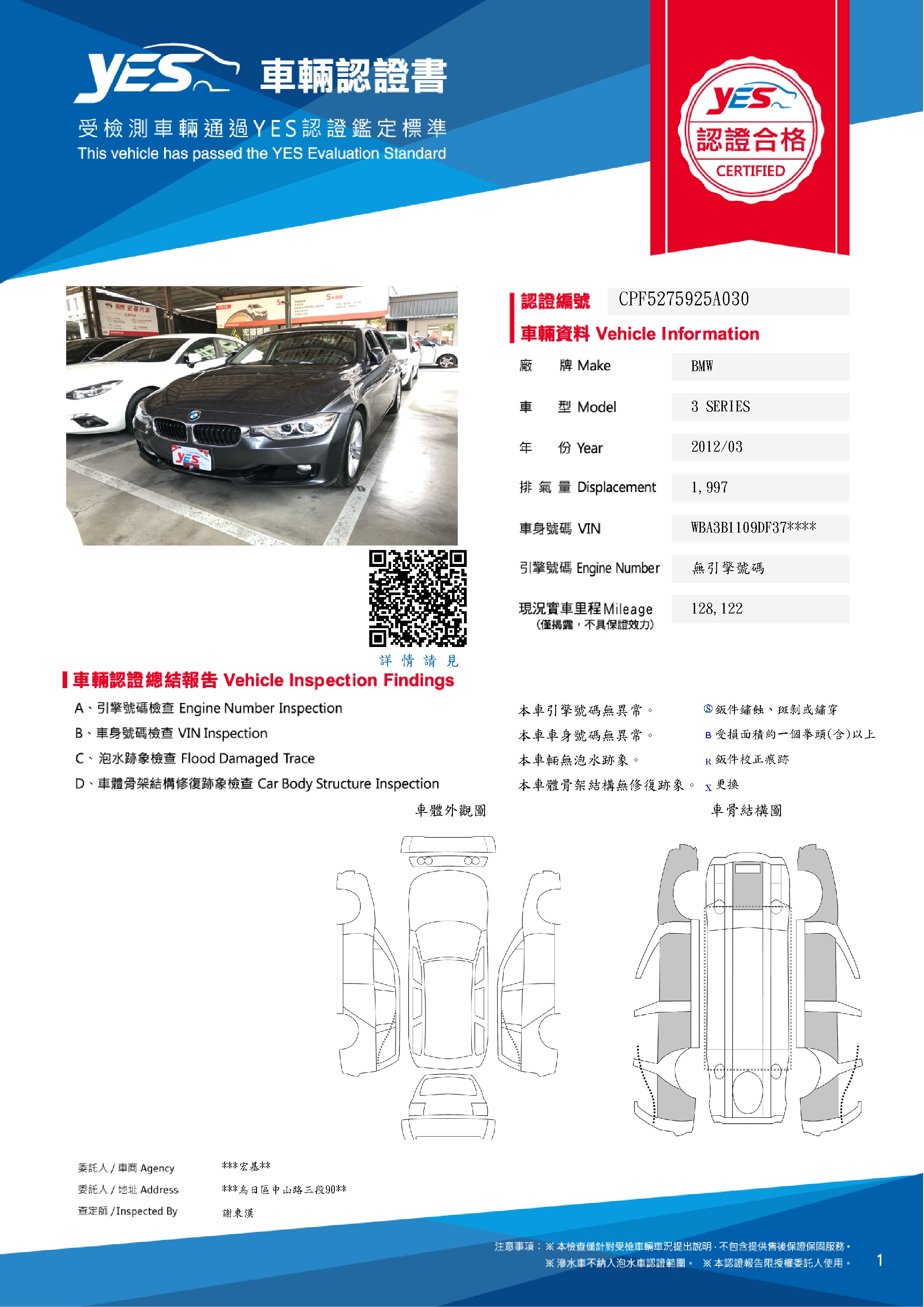 本車已由YES專業查定師完成 153 項檢測