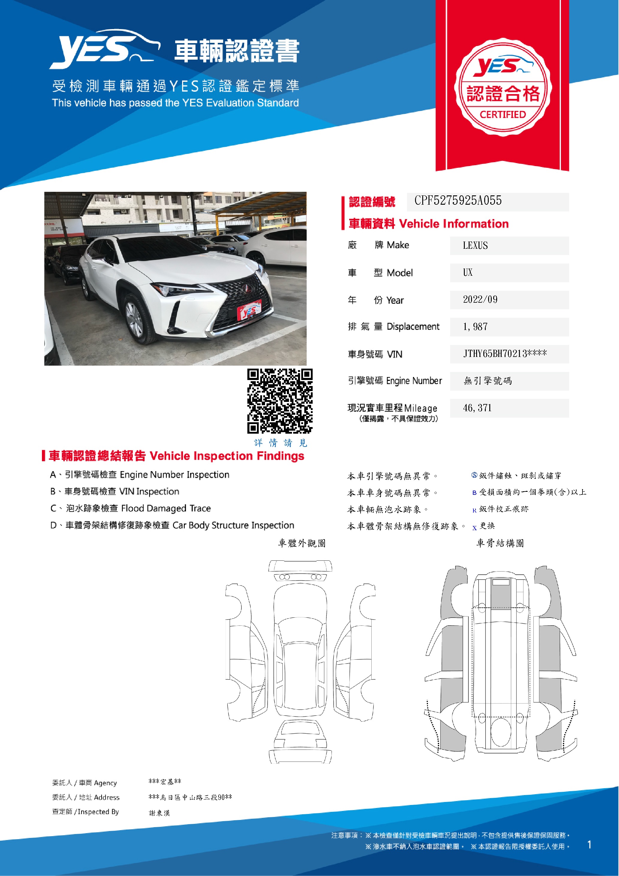 本車已由YES專業查定師完成 153 項檢測