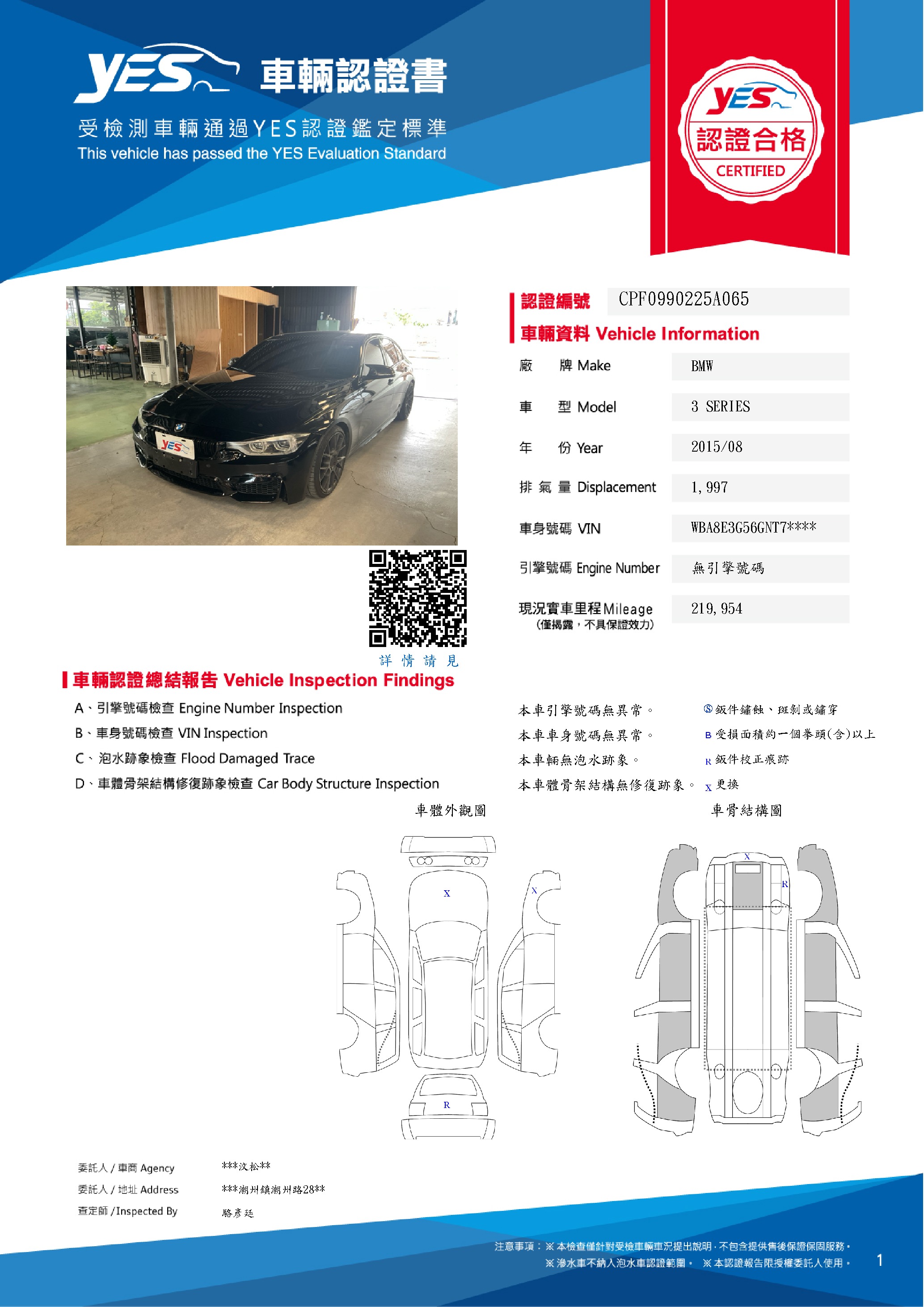 本車已由YES專業查定師完成 153 項檢測