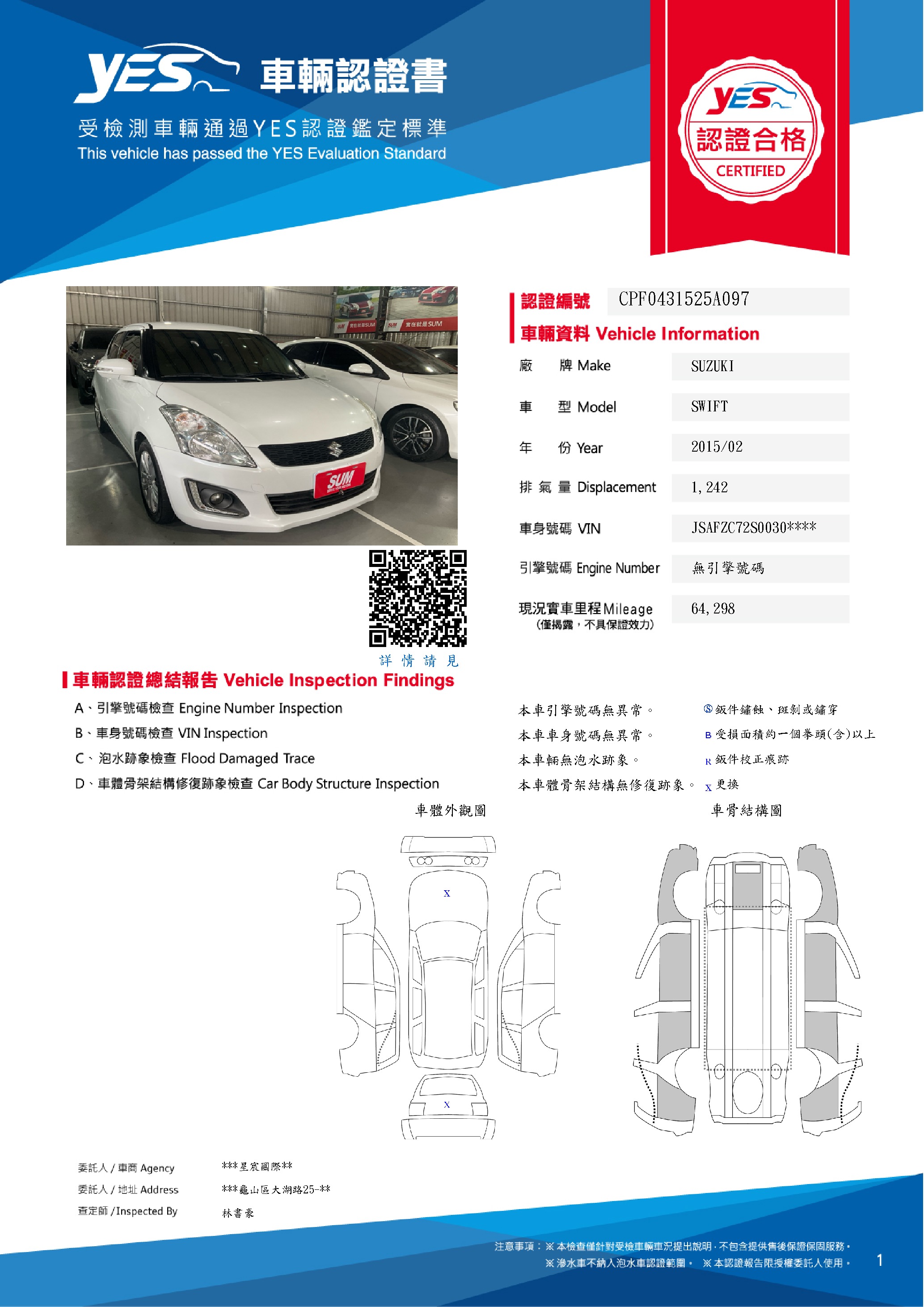 本車已由YES專業查定師完成 153 項檢測