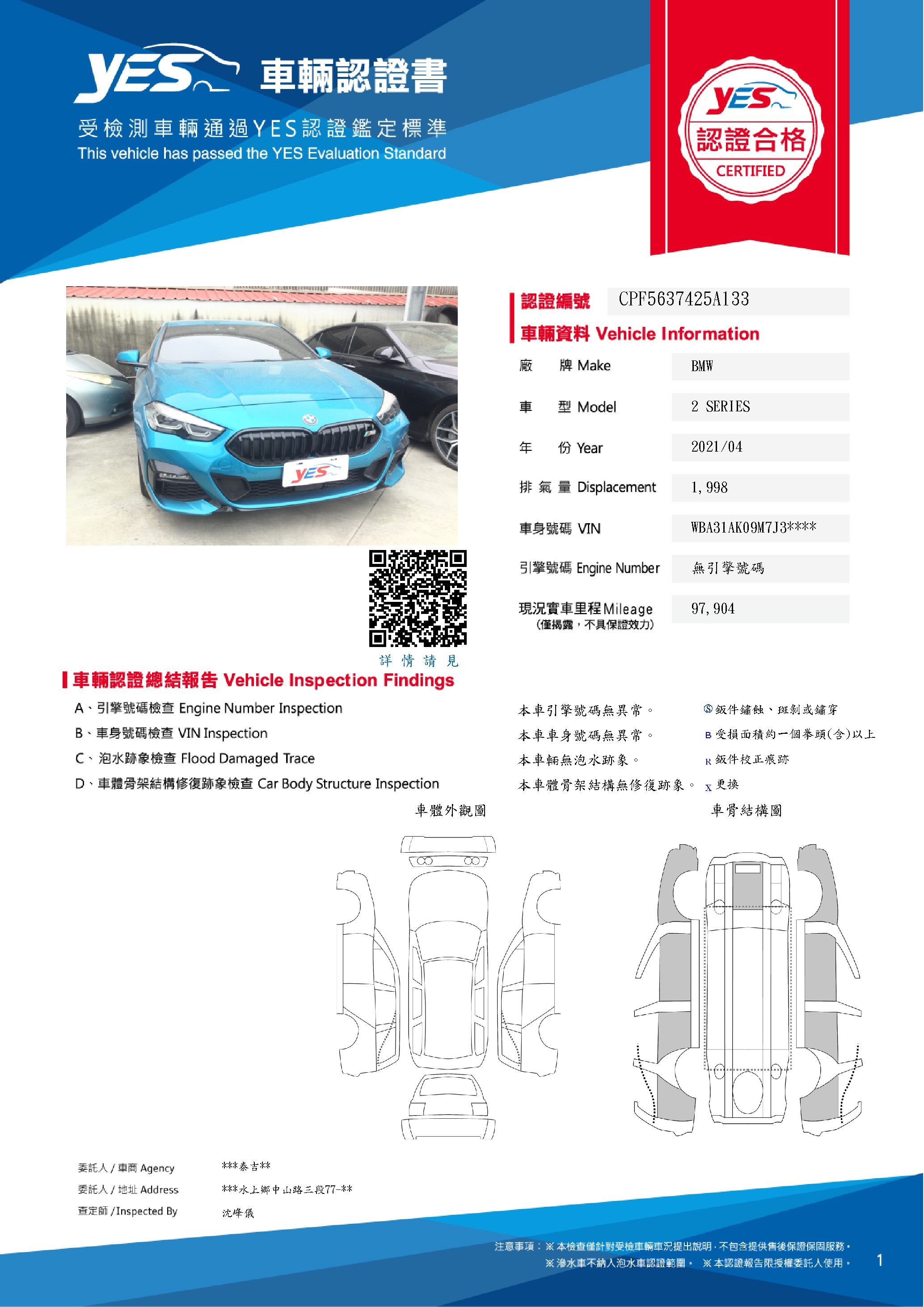 本車已由YES專業查定師完成 153 項檢測